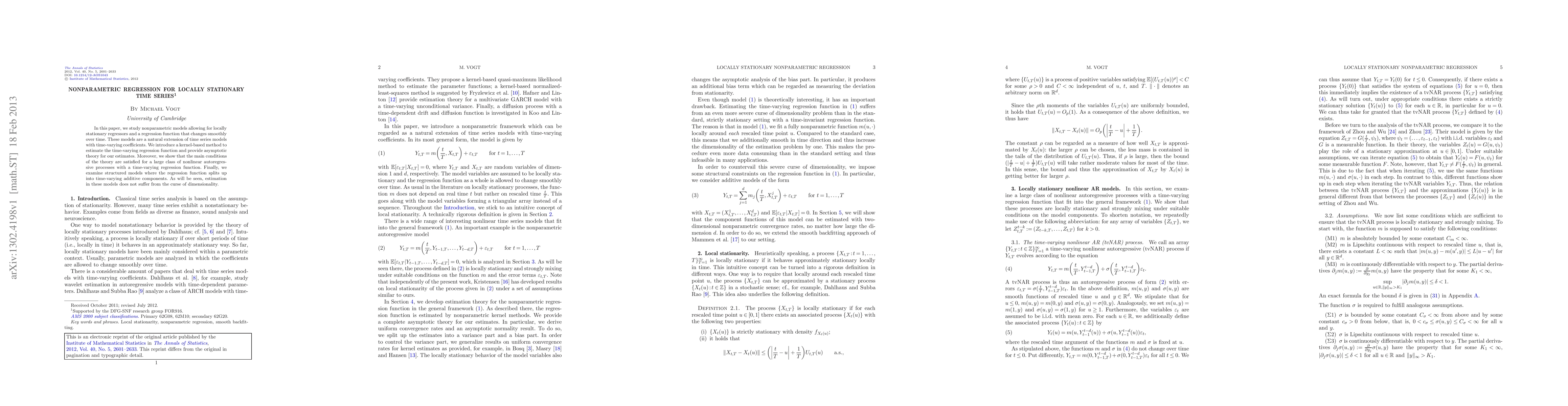 This work introduces a new approach to nonparametric regression for locally stationary timeseries, providing a flexible and accurate alternative to traditional methods.