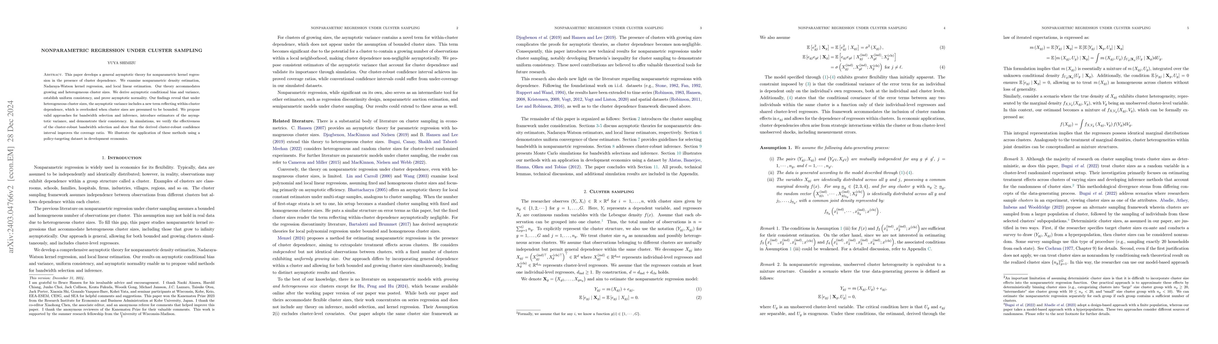 This paper develops a theoretical framework for nonparametric kernel regression under cluster sampling, accommodating varying cluster sizes. It introduces cluster-robust bandwidth selection and inference methods, proving improved coverage ratios and effectiveness via simulations and a development economics application.