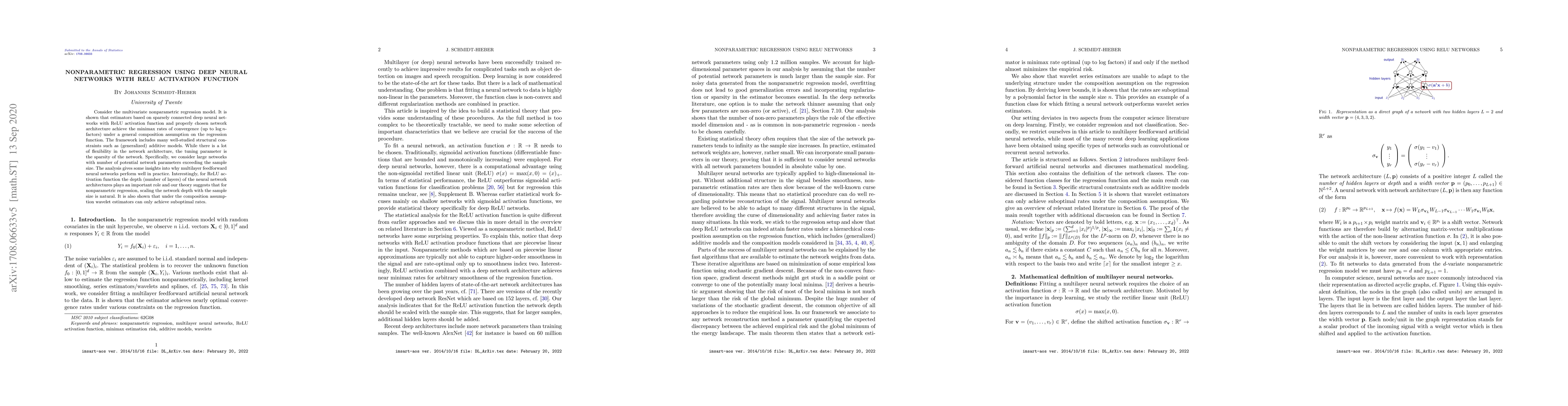 This paper demonstrates that deep neural networks with ReLU activation functions can achieve minimax rates of convergence for multivariate nonparametric regression, provided the network architecture is properly chosen. The analysis highlights the importance of network depth scaling with sample size and shows that wavelet estimators are suboptimal under a composition assumption.