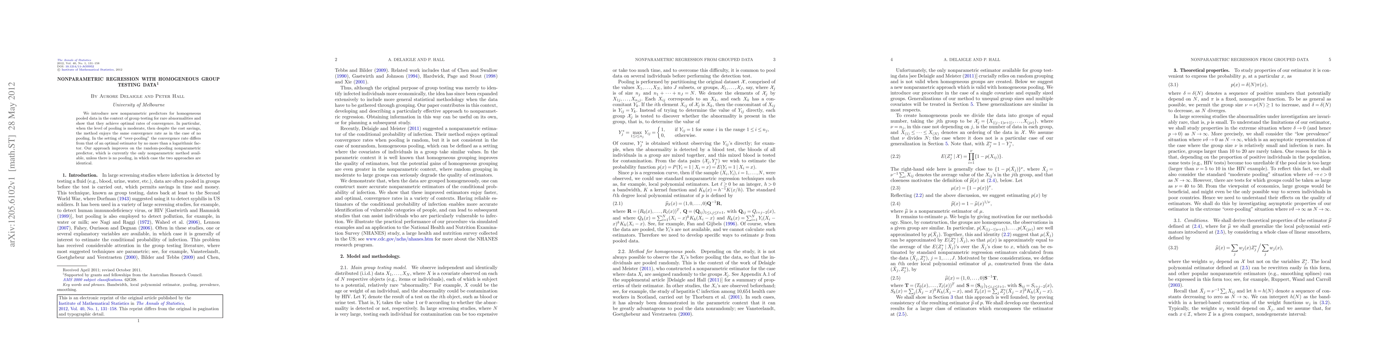 A new nonparametric regression method is introduced for homogeneous pooled data in group testing, achieving optimal convergence rates in both moderate and over-pooling scenarios.