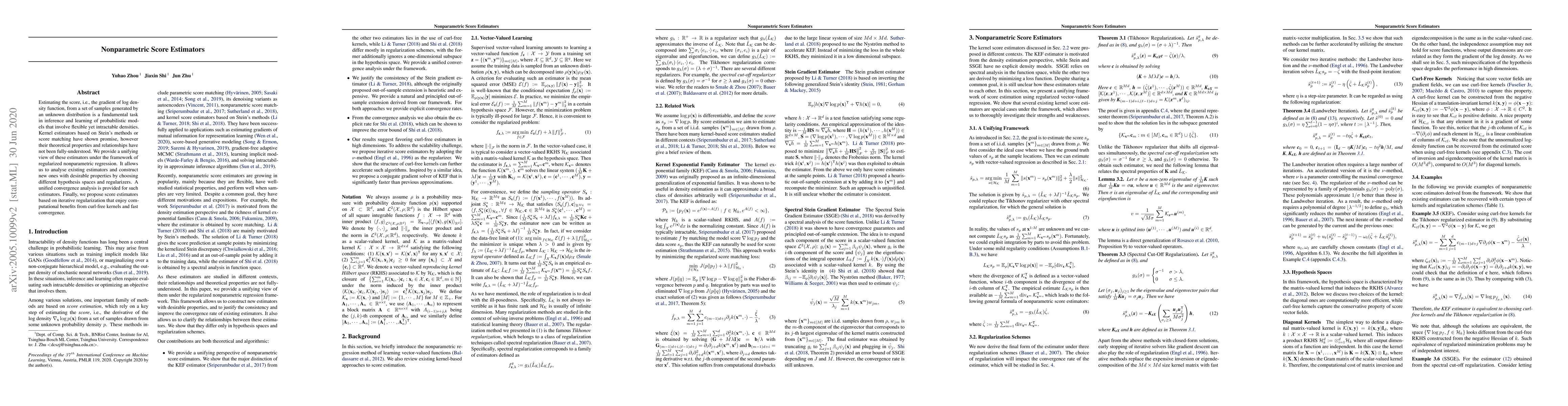 This paper unifies nonparametric score estimators under regularized nonparametric regression, analyzing existing methods and constructing new ones with desirable properties. It provides a comprehensive convergence analysis and proposes computationally efficient iterative regularization methods for score estimation.
