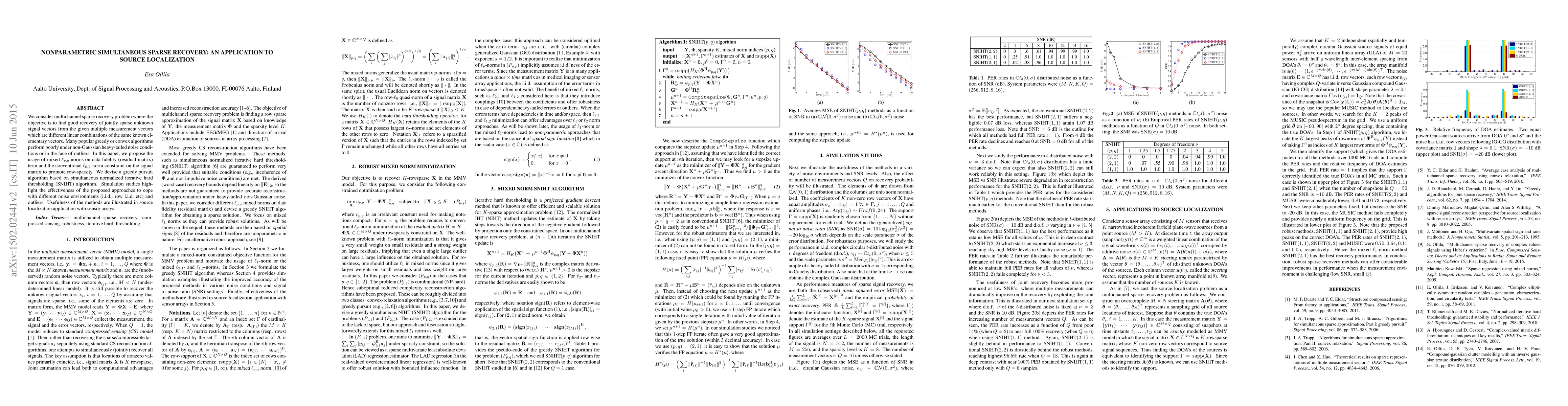 This paper proposes a mixed $\ell_{p,q}$ norm-based approach for simultaneous sparse recovery in multichannel settings, addressing challenges under non-Gaussian heavy-tailed noise and outliers. The introduced SNIHT algorithm demonstrates effectiveness in various noise environments and is applied to source localization in sensor arrays.