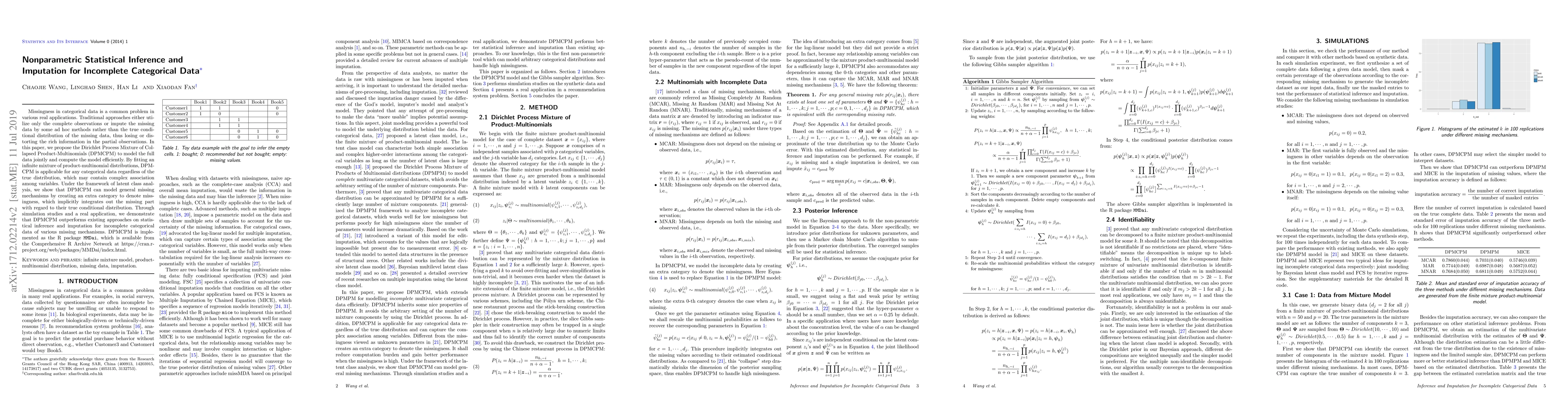 This paper introduces the Dirichlet Process Mixture of Collapsed Product-Multinomials (DPMCPM) for modeling and imputing incomplete categorical data, outperforming existing methods through efficient computation and better utilization of partial observations. The DPMCPM framework is implemented in the R package MMDai and shows superior performance in statistical inference and imputation.
