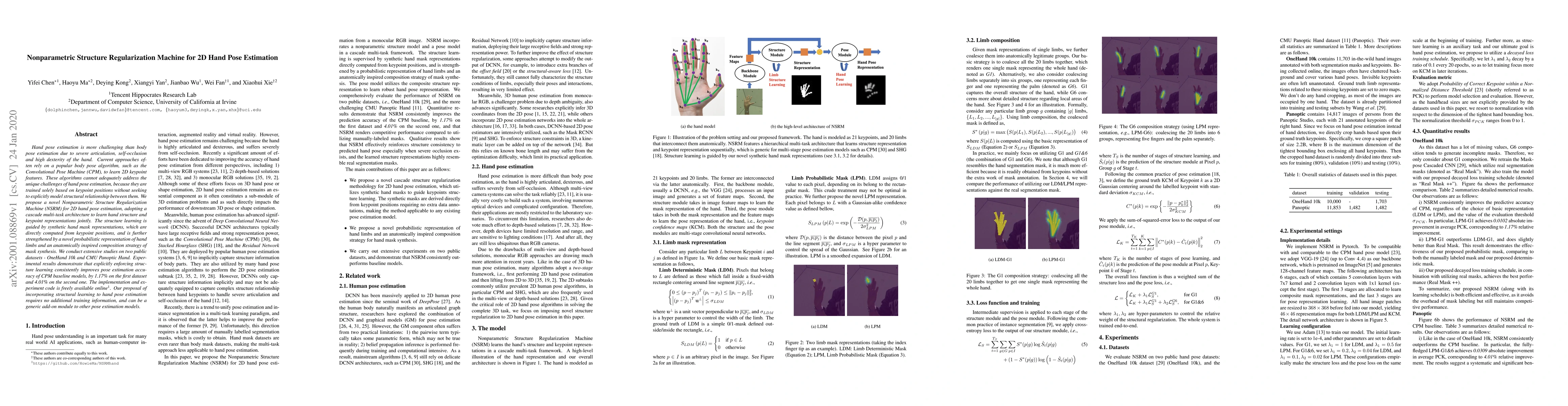 The paper proposes a Nonparametric Structure Regularization Machine (NSRM) for 2D hand pose estimation, which uses a cascade multi-task architecture to jointly learn hand structure and keypoint representations. The NSRM improves upon existing methods by explicitly modeling the structural relationships between hand keypoints, leading to better pose estimation accuracy on two public datasets.