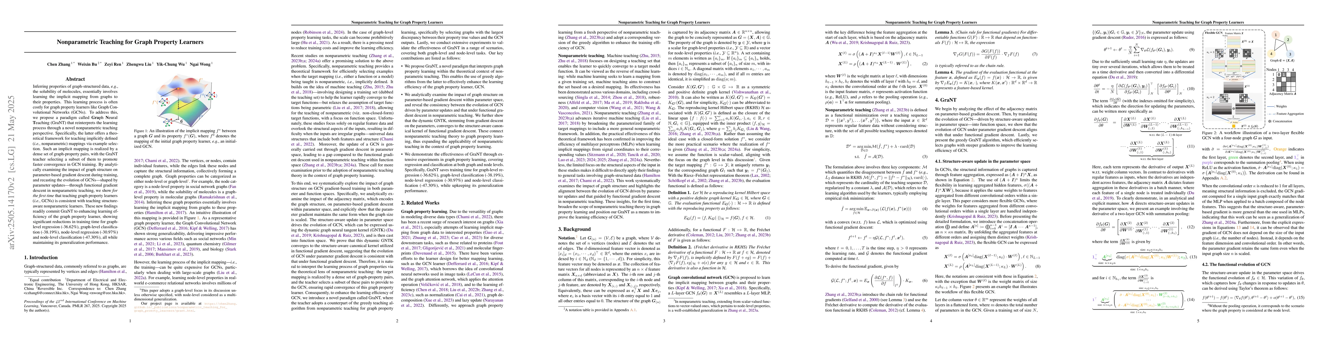 A new teaching approach called Graph Neural Teaching (GraNT) improves learning efficiency of graph property learners like GCNs by selecting a subset of implicit mapping pairs to promote faster convergence.