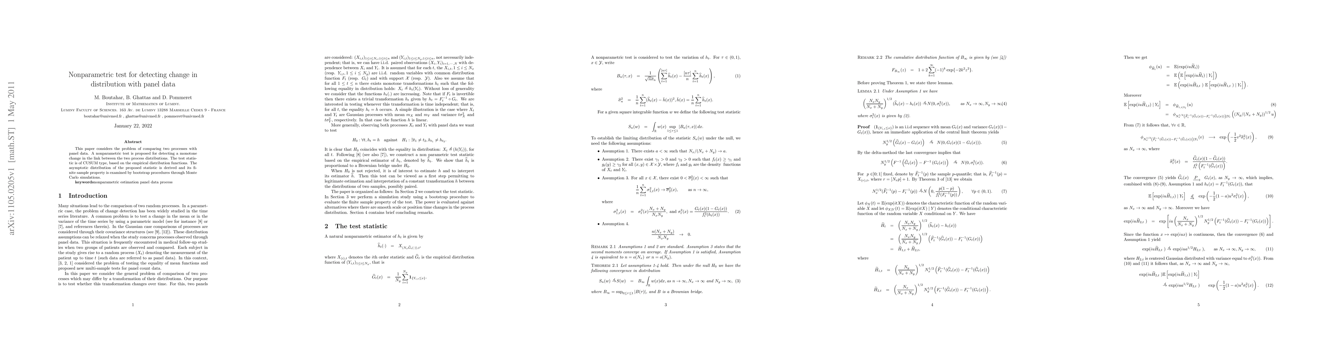 This paper considers the problem of comparing two processes with panel data. A nonparametric test is proposed for detecting a monotone change in the link between the two process distributions. The test statistic is of CUSUM type, based on the empirical distribution functions. The asymptotic distribution of the proposed statistic is derived and its finite sample property is examined by bootstrap procedures through Monte Carlo simulations.