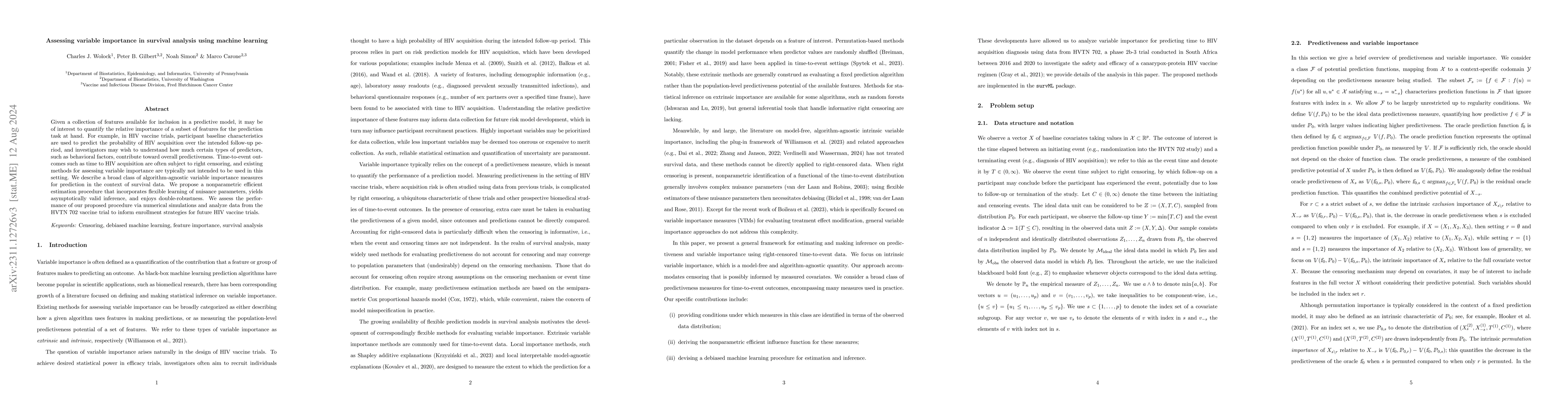 This paper introduces a nonparametric method for assessing variable importance in predictive models for time-to-event outcomes, particularly in HIV infection prediction. The proposed method is algorithm-agnostic, robust to right censoring, and validated through simulations and an analysis of the HVTN 702 study.