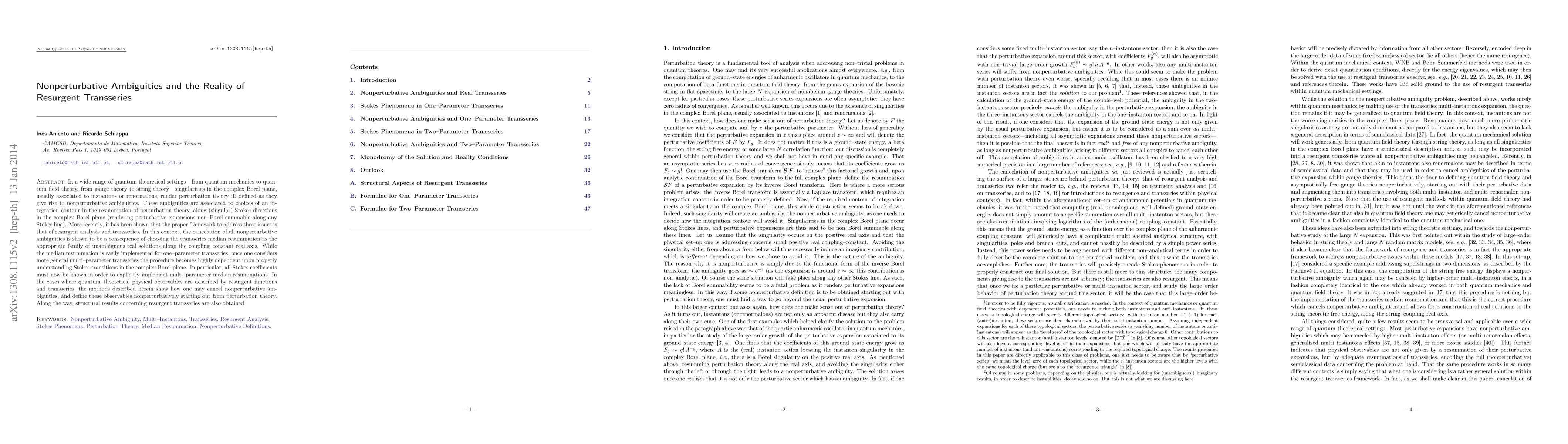 This paper addresses nonperturbative ambiguities in quantum theories by employing resurgent analysis and transseries, demonstrating how median resummation cancels these ambiguities. It highlights the complexity of implementing this method for multi-parameter transseries, requiring knowledge of all Stokes coefficients to achieve unambiguous real solutions.