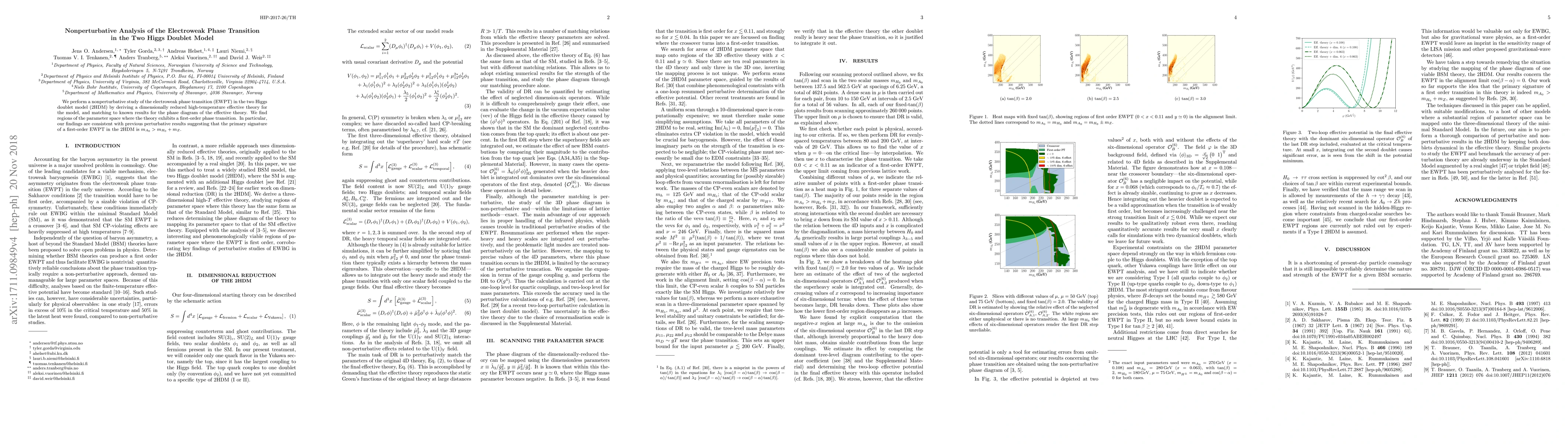 This paper conducts a nonperturbative analysis of the electroweak phase transition in the two Higgs doublet model, deriving a high-temperature effective theory and identifying regions where the transition is first-order, consistent with previous perturbative findings indicating $m_{A_0} > m_{H_0} + m_Z$ as a key signature.