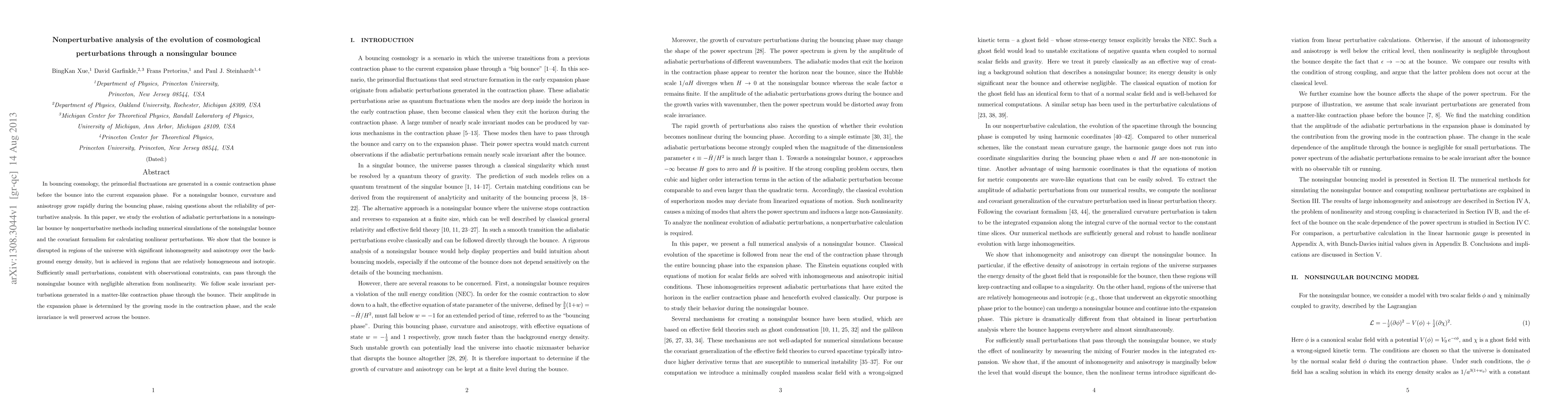 This paper employs nonperturbative methods to analyze the evolution of cosmological perturbations in a nonsingular bounce scenario, demonstrating that while the bounce is disrupted in inhomogeneous regions, it remains viable in homogeneous and isotropic regions, preserving scale invariance for small perturbations.