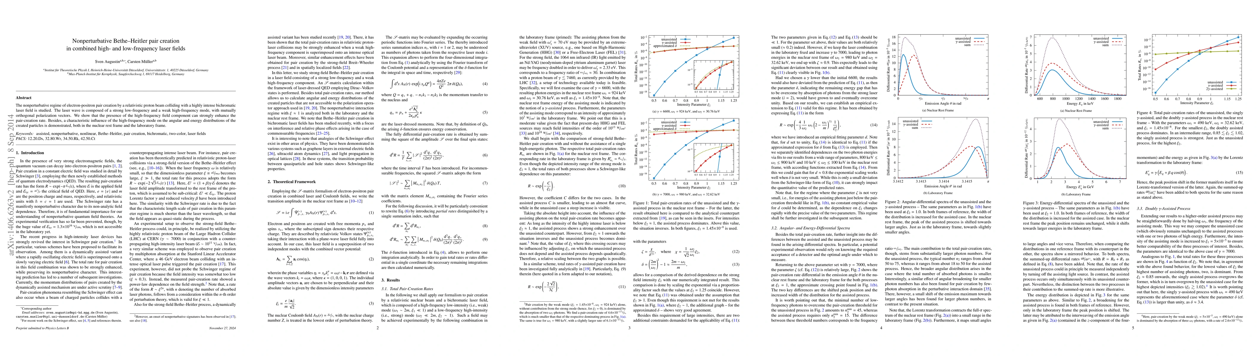 This study investigates nonperturbative electron-positron pair creation when a relativistic proton beam interacts with a bichromatic laser field, composed of a strong low-frequency and a weak high-frequency mode. The high-frequency component significantly enhances the pair-creation rate and influences the angular and energy distributions of the created particles.
