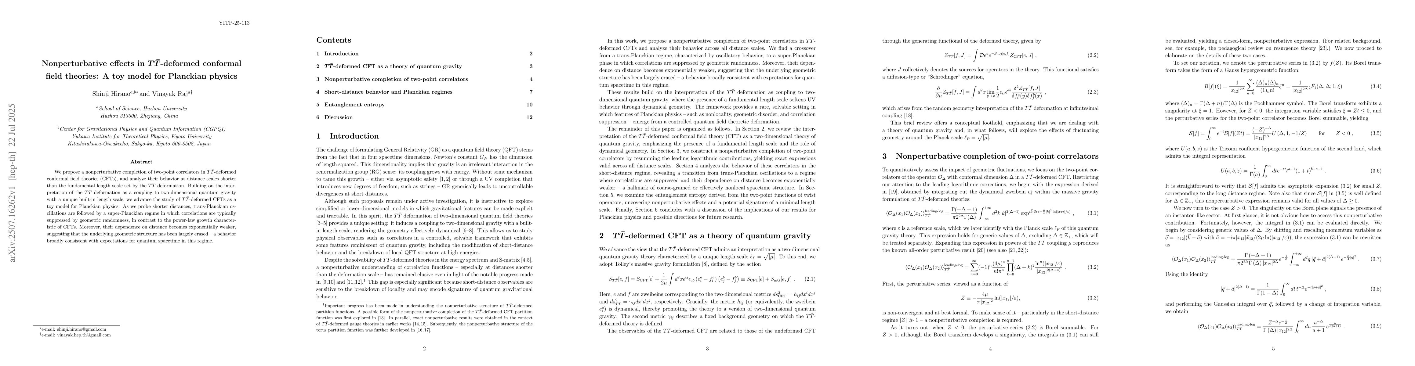 This study advances the understanding of $Tar{T}$-deformed CFTs as a toy model for Planckian physics, providing insights into quantum gravity and the behavior of quantum spacetime at short distances.