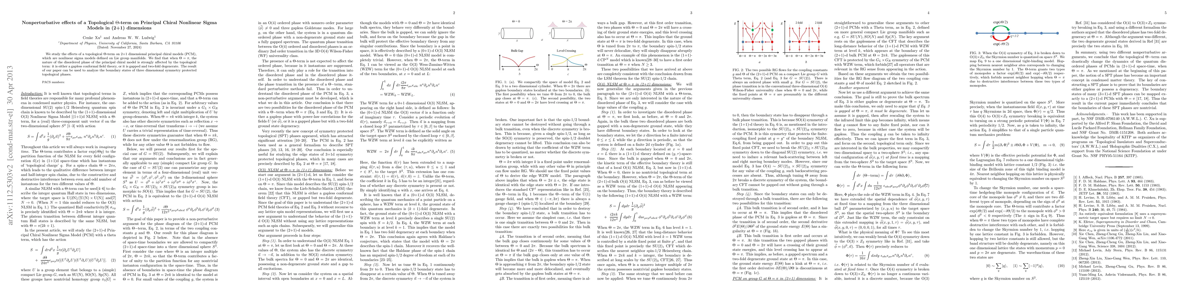 We study the effects of a topological Theta-term on 2+1 dimensional principal chiral models (PCM), which are nonlinear sigma models defined on Lie group manifolds. We find that when Theta = pi, the nature of the disordered phase of the principal chiral model is strongly affected by the topological term: it is either a gapless conformal field theory, or it is gapped and two-fold degenerate. The result of our paper can be used to analyze the boundary states of three dimensional symmetry protected topological phases.