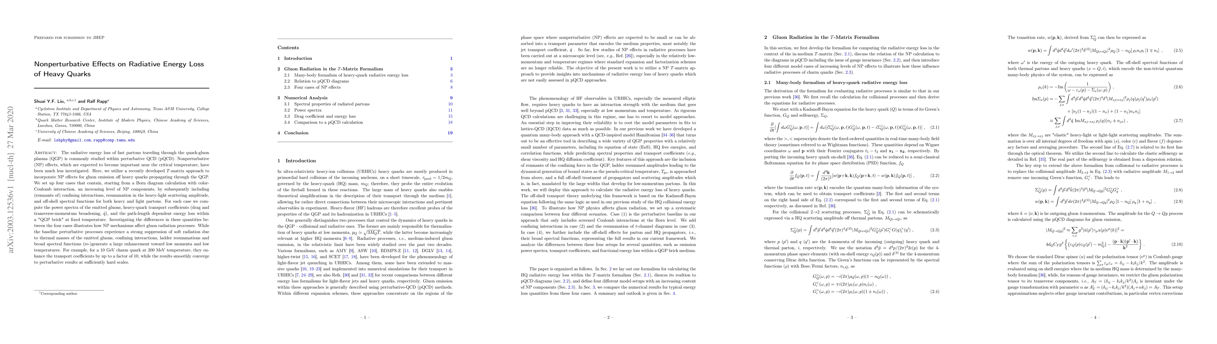 The radiative energy loss of fast partons traveling through the quark-gluon plasma (QGP) is commonly studied within perturbative QCD (pQCD). Nonperturbative (NP) effects, which are expected to become important near the critical temperature, have been much less investigated. Here, we utilize a recently developed $T$-matrix approach to incorporate NP effects for gluon emission off heavy quarks propagating through the QGP. We set up four cases that contain, starting from a Born diagram calculation with color-Coulomb interaction, an increasing level of NP components, by subsequently including (remnants of) confining interactions, resummation in the heavy-light scattering amplitude, and off-shell spectral functions for both heavy and light partons. For each case we compute the power spectra of the emitted gluons, heavy-quark transport coefficients (drag and transverse-momentum broadening, $\hat{q}$), and the path-length dependent energy loss within a "QGP brick" at fixed temperature. Investigating the differences in these quantities between the four cases illustrates how NP mechanisms affect gluon radiation processes. While the baseline perturbative processes experience a strong suppression of soft radiation due to thermal masses of the emitted gluons, confining interactions, ladder resummations and broad spectral functions (re-)generate a large enhancement toward low momenta and low temperatures. For example, for a 10 GeV charm quark at 200 MeV temperature, they enhance the transport coefficients by up to a factor of 10, while the results smoothly converge to perturbative results at sufficiently hard scales.