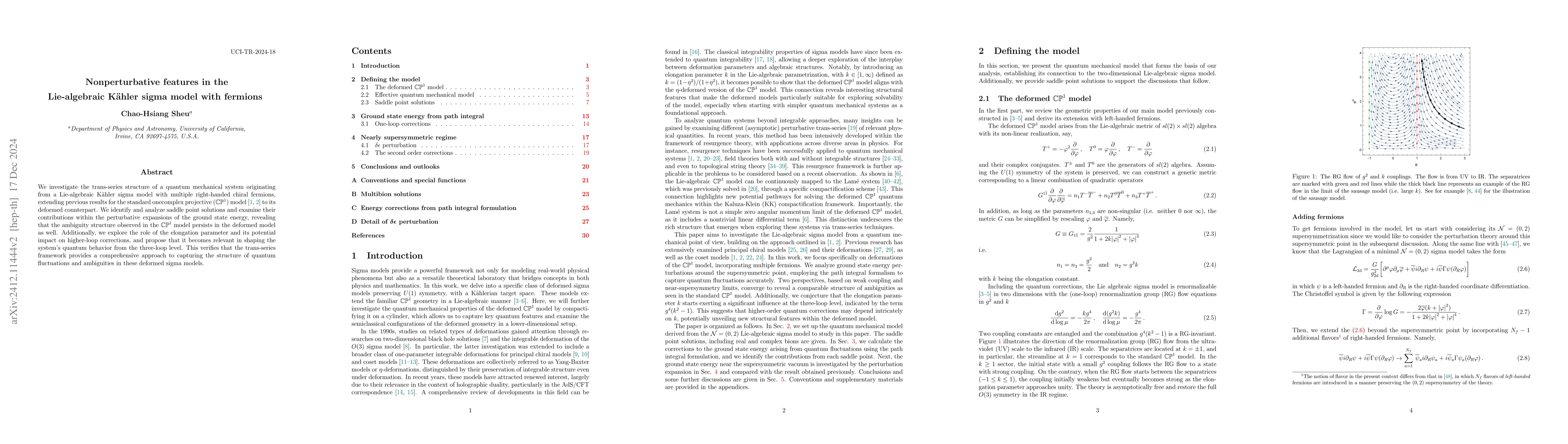 This paper examines the trans-series structure in a quantum mechanical system derived from a Lie-algebraic Kähler sigma model with fermions, extending findings from the $\mathbb{CP}^1$ model to its deformed version. It identifies saddle point solutions and their contributions, highlighting that ambiguities observed in $\mathbb{CP}^1$ persist, and suggests that the elongation parameter influences quantum behavior starting from three-loop corrections.