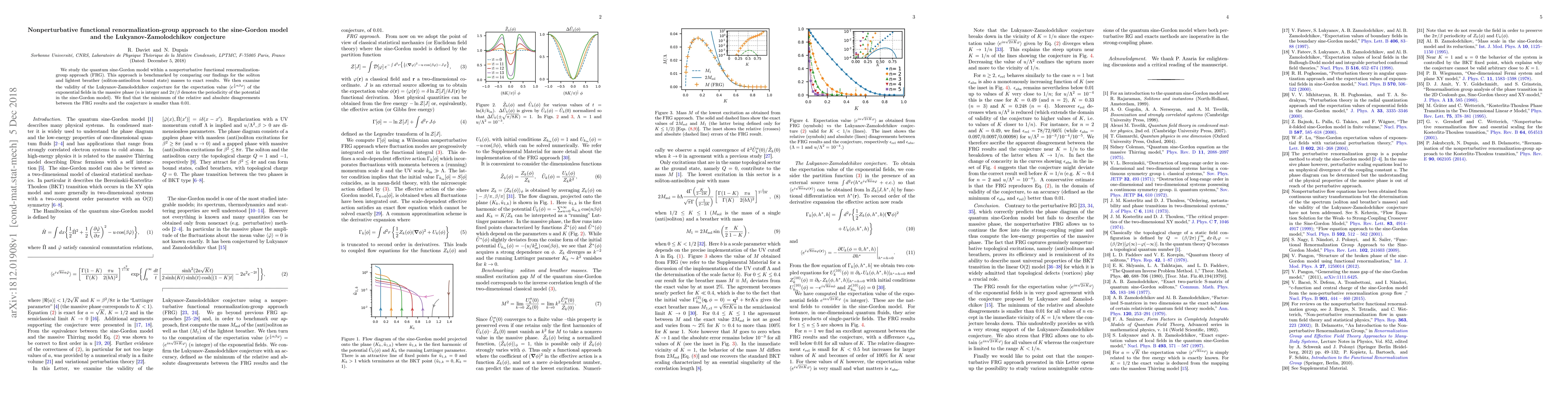 This paper employs a nonperturbative functional renormalization-group approach to study the quantum sine-Gordon model, verifying the approach against exact results for soliton and breather masses. The study also confirms the Lukyanov-Zamolodchikov conjecture for exponential field expectations, showing minimal discrepancies of less than 0.01.