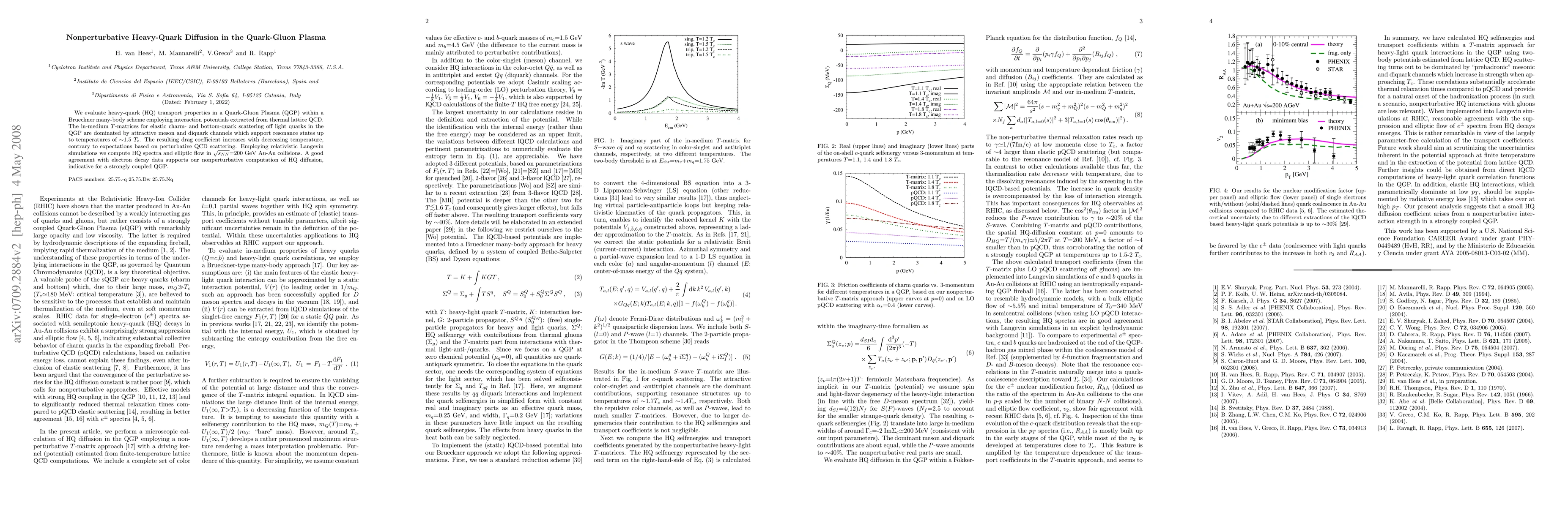 This study evaluates nonperturbative heavy-quark diffusion in a Quark-Gluon Plasma (QGP) using interaction potentials from thermal lattice QCD, revealing attractive channels supporting bound states up to temperatures of ~1.5 T_c. The findings suggest a strongly coupled QGP, as demonstrated by good agreement between computed HQ spectra and elliptic flow with experimental data from Au-Au collisions.