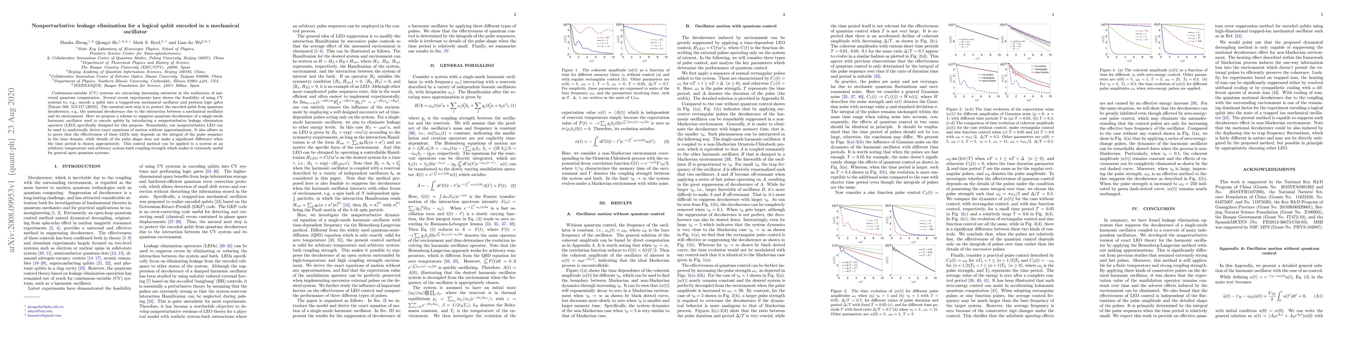 Researchers proposed a method to eliminate quantum decoherence in qubits encoded in mechanical oscillators using nonperturbative leakage elimination operators, which can protect qubits at arbitrary temperatures and system-bath coupling strengths.