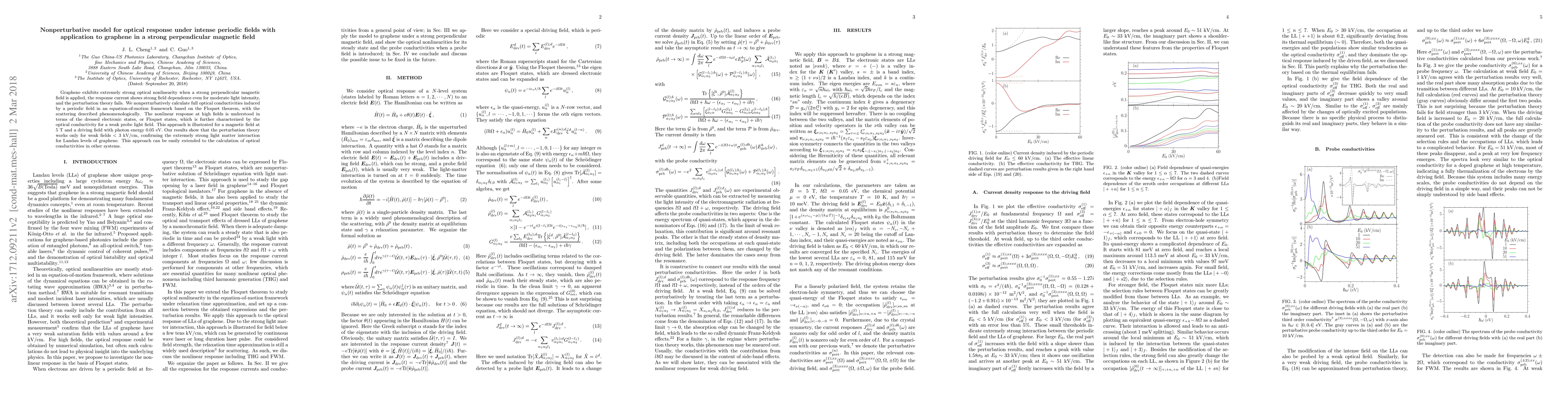 This research develops a nonperturbative model to calculate optical conductivities in graphene under strong perpendicular magnetic fields, finding that perturbation theory fails for fields above 3 kV/cm. The model uses Floquet states and optical conductivities for weak probe light, showing significant optical nonlinearity due to dressed electronic states.