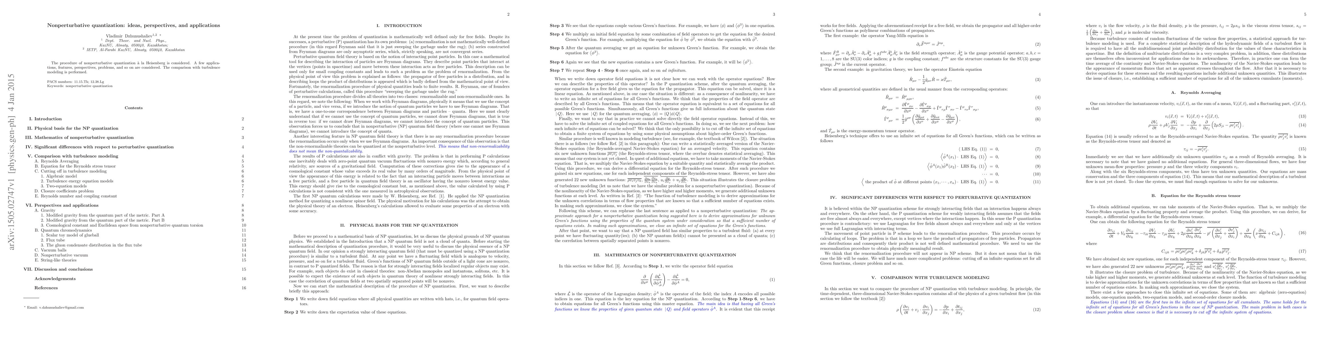 This paper explores nonperturbative quantization, a method that aims to accurately describe complex quantum systems without relying on perturbation theory. It discusses various applications, perspectives, and comparisons with turbulence modeling, providing insights into the challenges and potential of this approach.