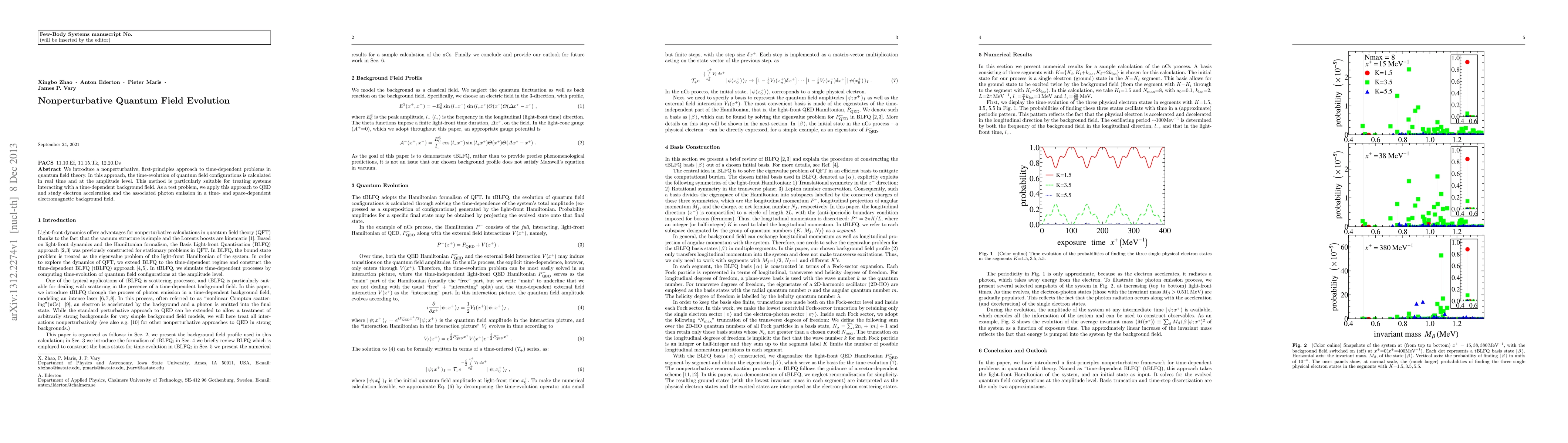 This paper presents a novel nonperturbative method for solving time-dependent quantum field theory problems, focusing on real-time evolution of quantum field configurations. It applies this approach to QED to study electron acceleration and photon emission under time-varying electromagnetic fields.