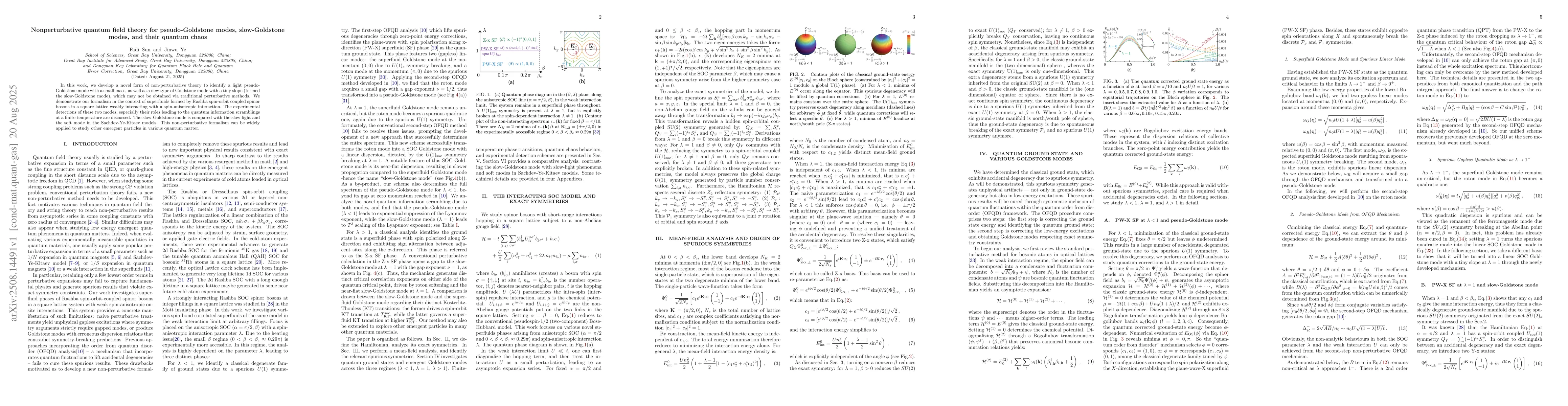 In this work, we develop a novel form of non-perturbative theory to identify a light pseudo-Goldstone mode with a small mass, as well as a new type of Goldstone mode with a tiny slope (termed the slow-Goldstone mode), which may not be obtained via traditional perturbative methods. We demonstrate our formalism in the context of superfluids formed by Rashba spin-orbit coupled spinor bosons in a square lattice weakly interacting with a spin-anisotropic interaction. The experimental detections of these two modes, especially their roles leading to the quantum information scramblings at a finite temperature are discussed. The slow-Goldstone mode is compared with the slow light and the soft mode in the Sachdev-Ye-Kitaev models. This non-perturbative formalism can be widely applied to study other emergent particles in various quantum matter.