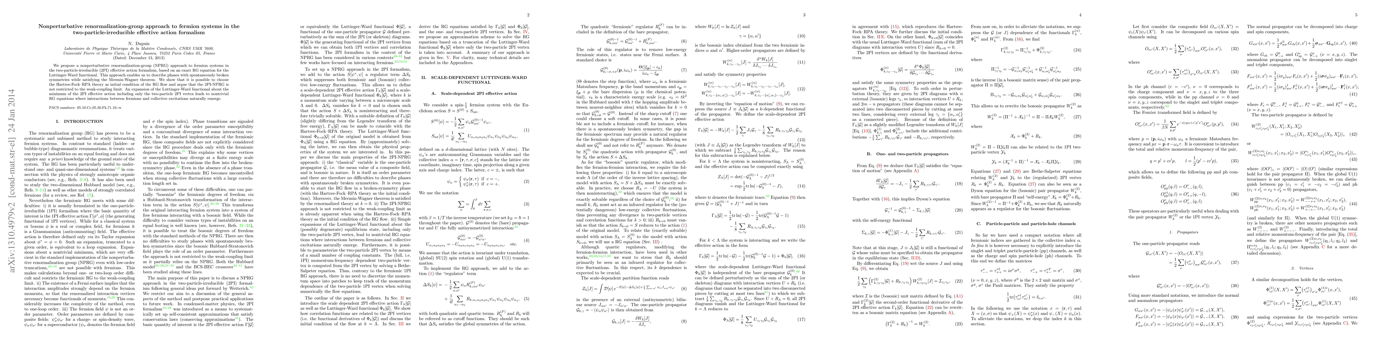 This paper introduces a nonperturbative renormalization-group (NPRG) approach for fermion systems within the two-particle-irreducible (2PI) effective action formalism, enabling the description of phases with spontaneously broken symmetries. The method is shown to be applicable beyond the weak-coupling limit and naturally incorporates interactions between fermions and collective excitations.