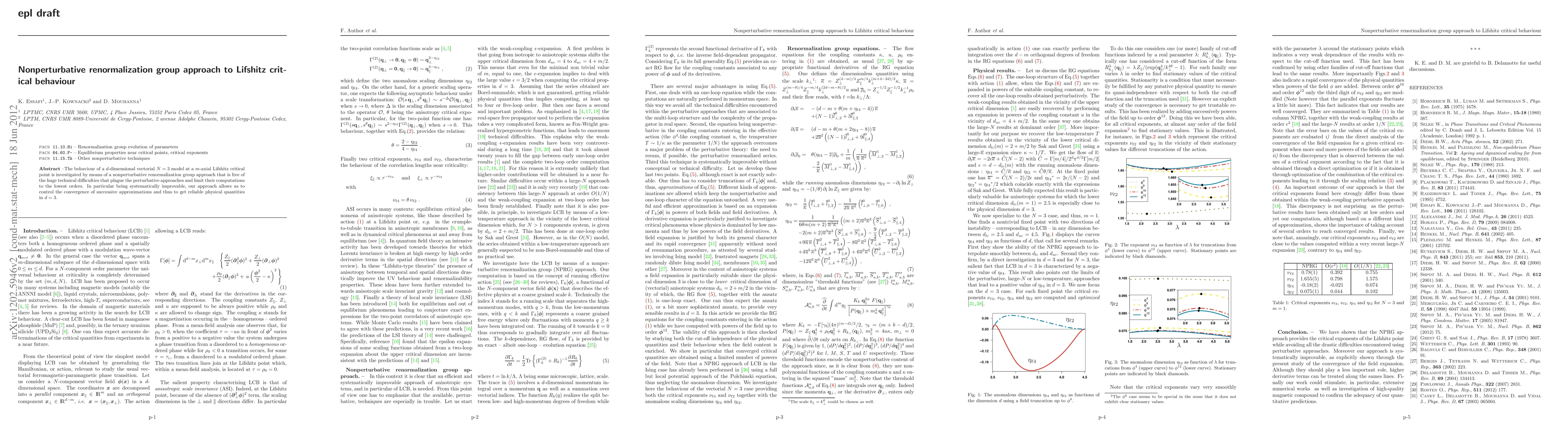 The paper introduces an NPRG approach to study Lifshitz critical behavior, providing exact RG flow equations for coupling constants and running anomalous dimensions, which overcomes the limitations of perturbative techniques.