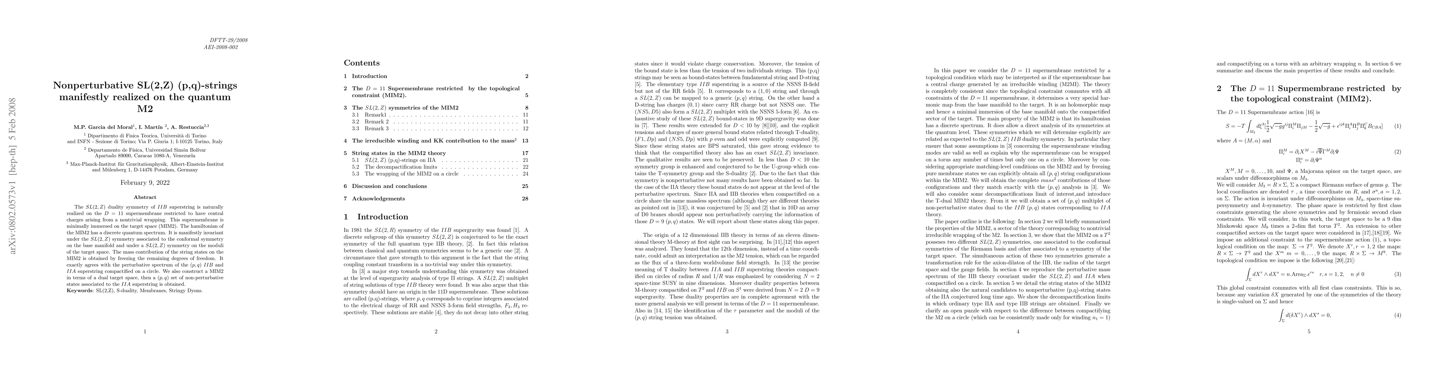 The SL(2,Z) duality symmetry of IIB superstring is naturally realized on the D=11 supermembrane restricted to have central charges arising from a nontrivial wrapping. This supermembrane is minimally immersed on the target space (MIM2). The hamiltonian of the MIM2 has a discrete quantum spectrum. It is manifestly invariant under the SL(2,Z) symmetry associated to the conformal symmetry on the base manifold and under a SL(2,Z) symmetry on the moduli of the target space. The mass contribution of the string states on the MIM2 is obtained by freezing the remaining degrees of freedom. It exactly agrees with the perturbative spectrum of the (p,q) IIB and IIA superstring compactified on a circle. We also construct a MIM2 in terms of a dual target space, then a (p,q) set of non-perturbative states associated to the IIA superstring is obtained.