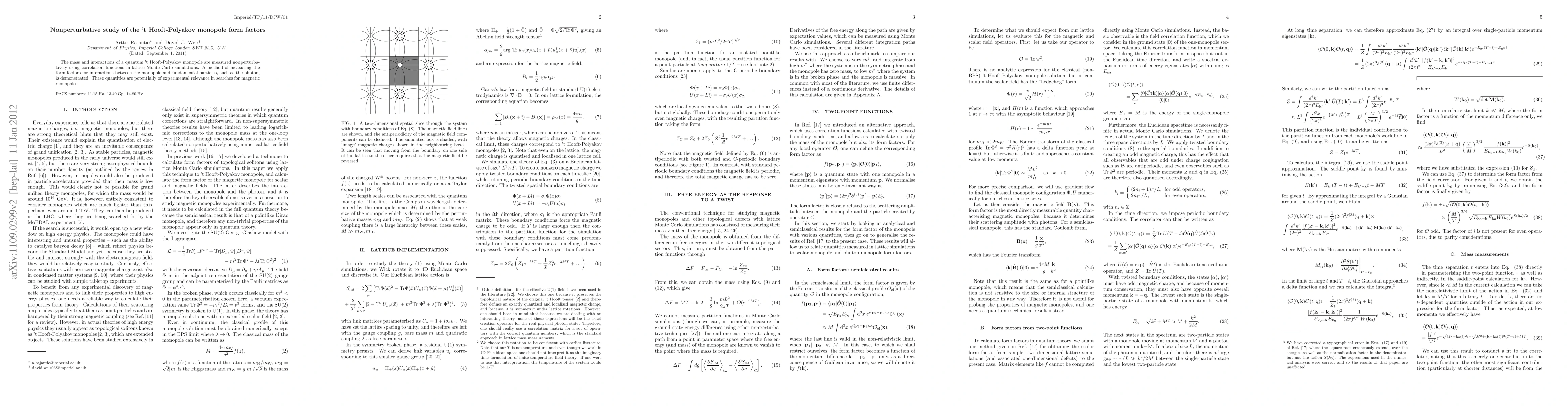 This study measures the mass and interactions of 't Hooft-Polyakov monopoles nonperturbatively via lattice Monte Carlo simulations, demonstrating a method for assessing monopole form factors in relation to fundamental particles like photons. Such insights could aid in experimental searches for magnetic monopoles.