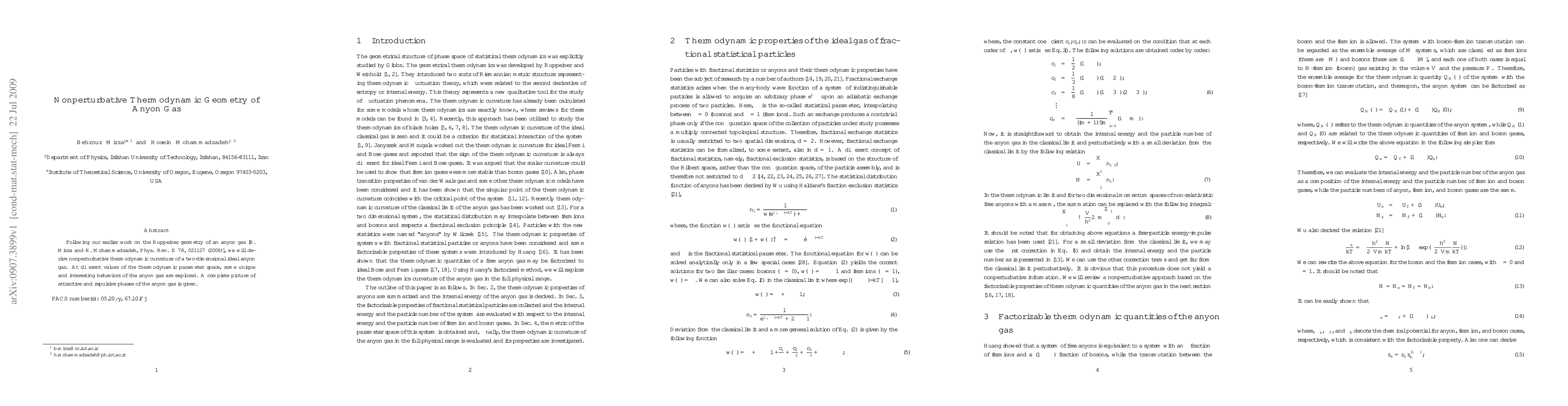 The paper derives nonperturbative thermodynamic curvature for a two-dimensional ideal anyon gas, exploring unique behaviors at various thermodynamic parameter values and presenting a comprehensive view of both attractive and repulsive phases.
