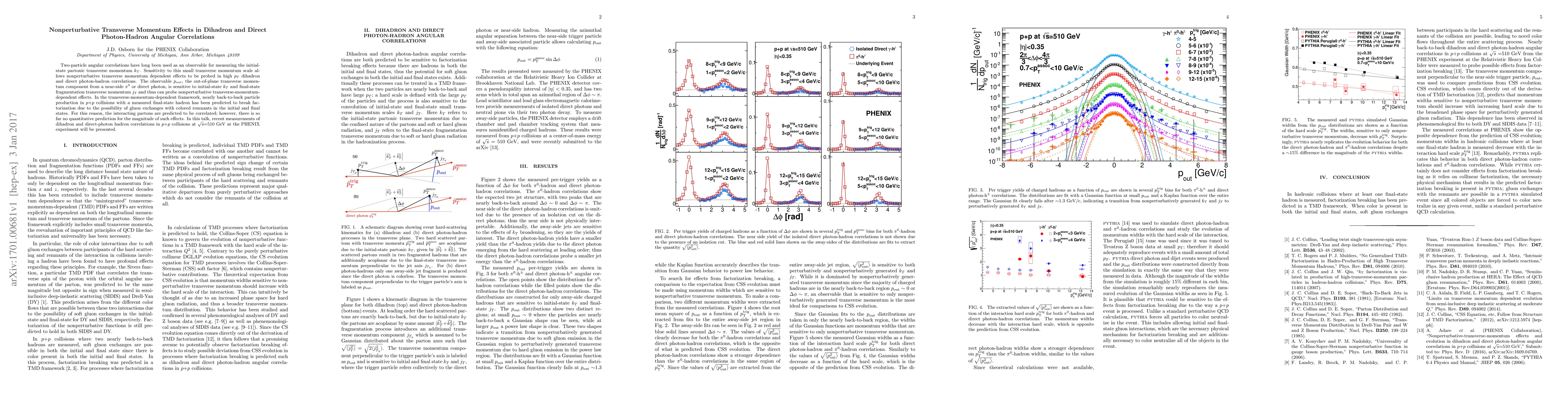 This paper investigates nonperturbative transverse momentum effects in high $p_T$ dihadron and direct photon-hadron angular correlations, using the observable $p_{out}$ to probe initial-state partonic and final-state fragmentation transverse momentum. Recent PHENIX experiment results at $\sqrt{s}$=510 GeV reveal potential breakdown of factorization due to correlated parton interactions.