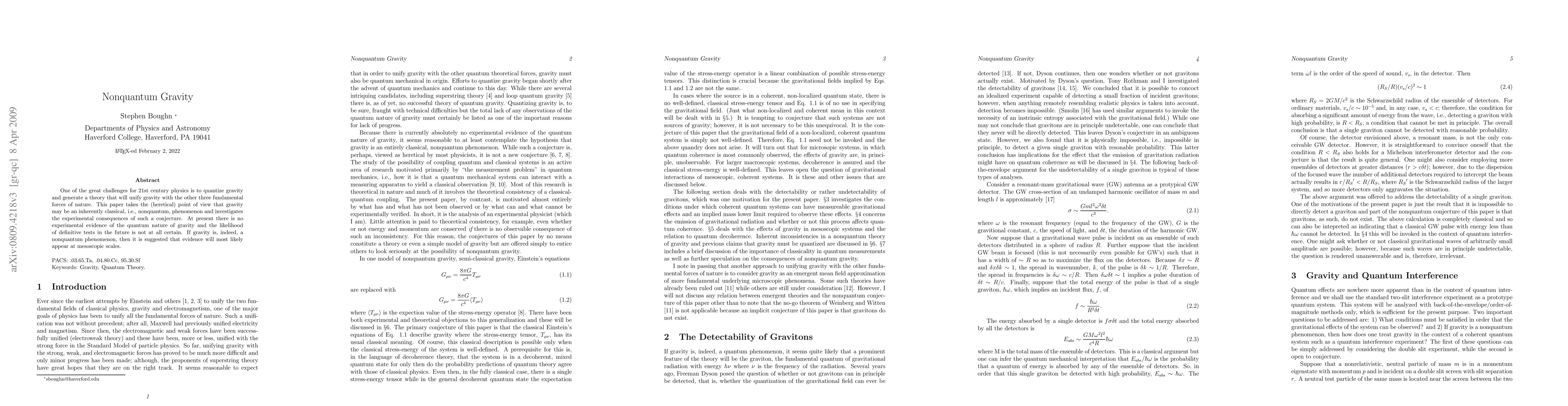 This paper proposes that gravity may be a nonquantum phenomenon, suggesting experimental evidence could appear at mesoscopic scales, rather than the expected quantum realm.
