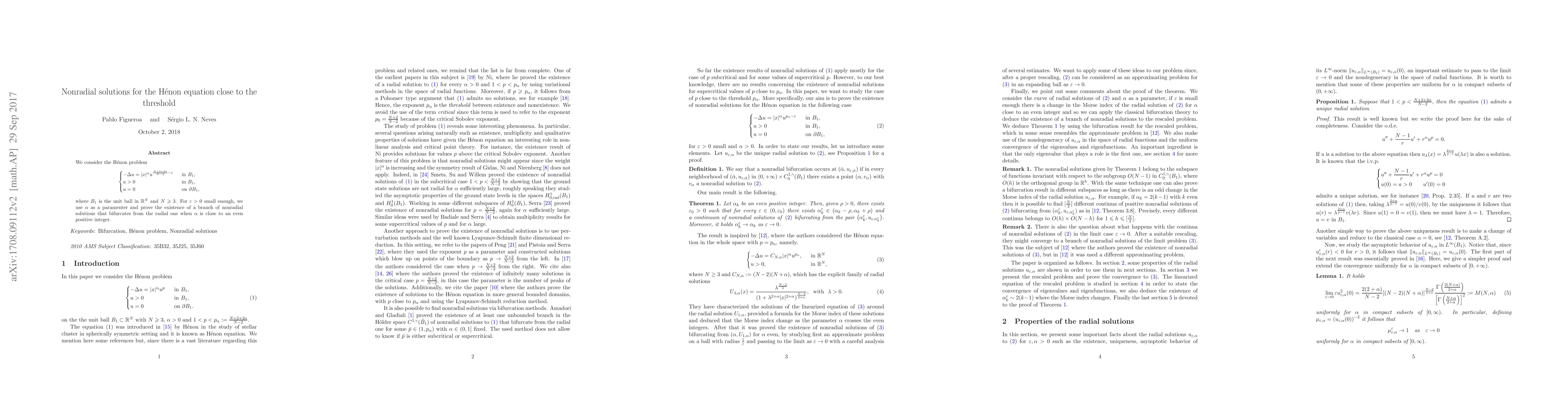 We consider the H\'enon problem \begin{equation*} \left\{ \begin{array} - - \Delta u = |x|^{\alpha} u^{\frac{N+2+2\alpha}{N-2}-\varepsilon} & \ \ \text{in} \ B_1, \\ u > 0 & \ \ \text{in} \ B_1, \\ u=0 & \ \ \text{on} \ \partial B_1, \end{array} \right. \end{equation*} where $B_1$ is the unit ball in ${\mathbb R}^N$ and $N\geqslant 3$. For $\varepsilon > 0$ small enough, we use $\alpha$ as a paramenter and prove the existence of a branch of nonradial solutions that bifurcates from the radial one when $\alpha$ is close to an even positive integer.