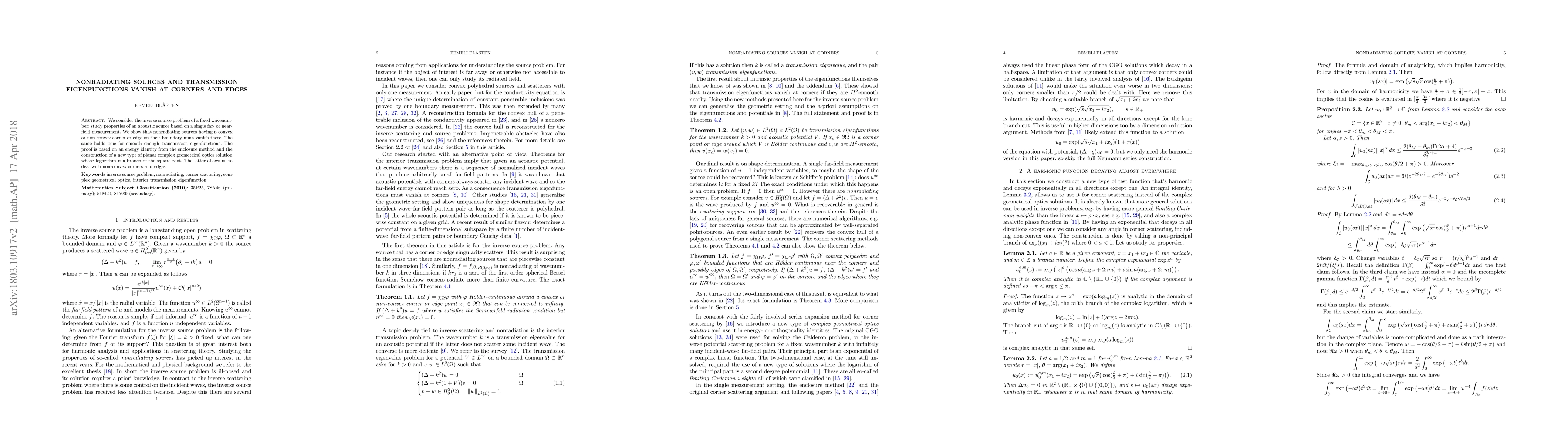 Researchers show that non-radiating acoustic sources with corners or edges must vanish at these points, and their transmission eigenfunctions also disappear for smooth shapes.
