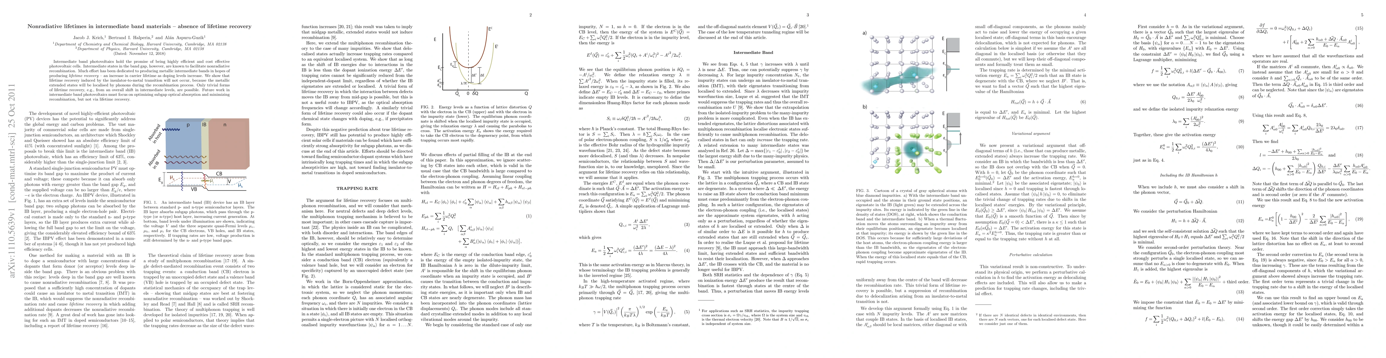 Intermediate band photovoltaics hold the promise of being highly efficient and cost effective photovoltaic cells. Intermediate states in the band gap, however, are known to facilitate nonradiative recombination. Much effort has been dedicated to producing metallic intermediate bands in hopes of producing lifetime recovery -- an increase in carrier lifetime as doping levels increase. We show that lifetime recovery induced by the insulator-to-metal transition will not occur, because the metallic extended states will be localised by phonons during the recombination process. Only trivial forms of lifetime recovery, e.g., from an overall shift in intermediate levels, are possible. Future work in intermediate band photovoltaics must focus on optimizing subgap optical absorption and minimizing recombination, but not via lifetime recovery.