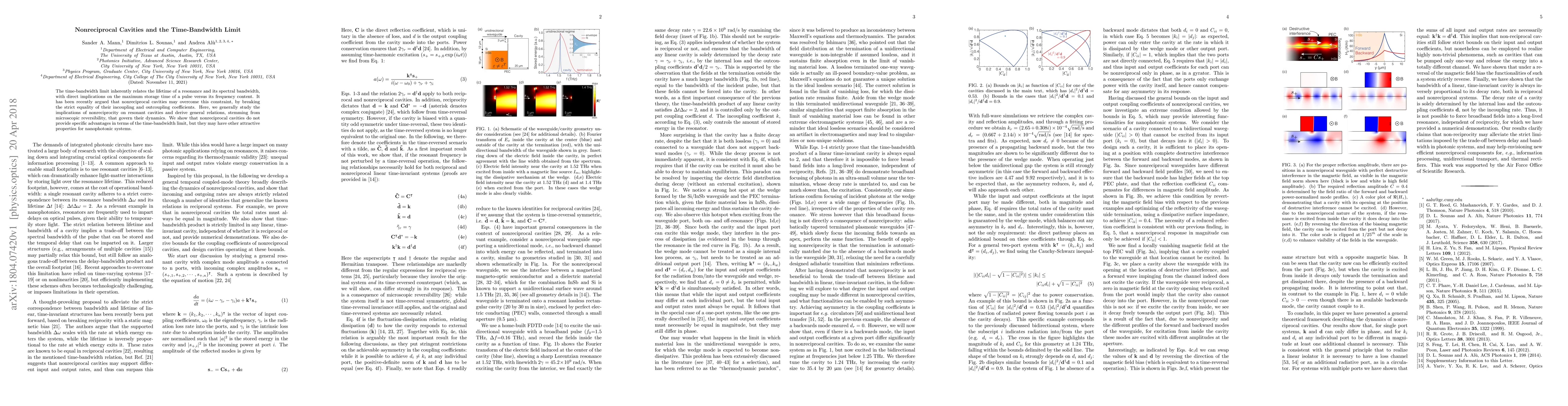 The time-bandwidth limit inherently relates the lifetime of a resonance and its spectral bandwidth, with direct implications on the maximum storage time of a pulse versus its frequency content. It has been recently argued that nonreciprocal cavities may overcome this constraint, by breaking the strict equality of their incoupling and outcoupling coefficients. Here, we generally study the implications of nonreciprocity on resonant cavities and derive general relations, stemming from microscopic reversibility, that govern their dynamics. We show that nonreciprocal cavities do not provide specific advantages in terms of the time-bandwidth limit, but they may have other attractive properties for nanophotonic systems.
