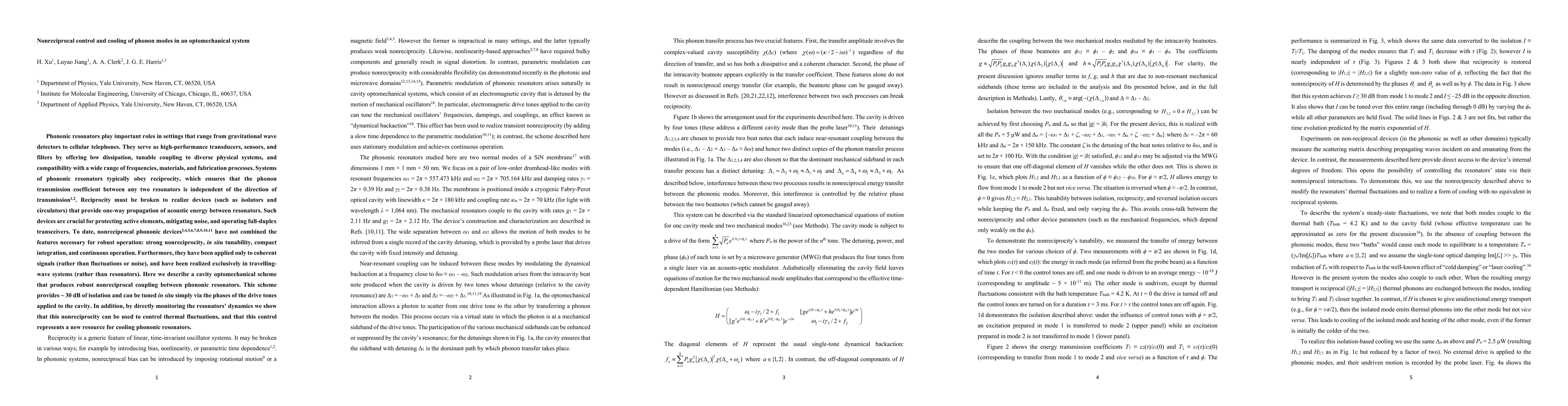 Phononic resonators play important roles in settings that range from gravitational wave detectors to cellular telephones. They serve as high-performance transducers, sensors, and filters by offering low dissipation, tunable coupling to diverse physical systems, and compatibility with a wide range of frequencies, materials, and fabrication processes. Systems of phononic resonators typically obey reciprocity, which ensures that the phonon transmission coefficient between any two resonators is independent of the direction of transmission. Reciprocity must be broken to realize devices (such as isolators and circulators) that provide one-way propagation of acoustic energy between resonators. Such devices are crucial for protecting active elements, mitigating noise, and operating full-duplex transceivers. To date, nonreciprocal phononic devices have not combined the features necessary for robust operation: strong nonreciprocity, in situ tunability, compact integration, and continuous operation. Furthermore, they have been applied only to coherent signals (rather than fluctuations or noise), and have been realized exclusively in travelling-wave systems (rather than resonators). Here we describe a cavity optomechanical scheme that produces robust nonreciprocal coupling between phononic resonators. This scheme provides ~ 30 dB of isolation and can be tuned in situ simply via the phases of the drive tones applied to the cavity. In addition, by directly monitoring the resonators' dynamics we show that this nonreciprocity can be used to control thermal fluctuations, and that this control represents a new resource for cooling phononic resonators.