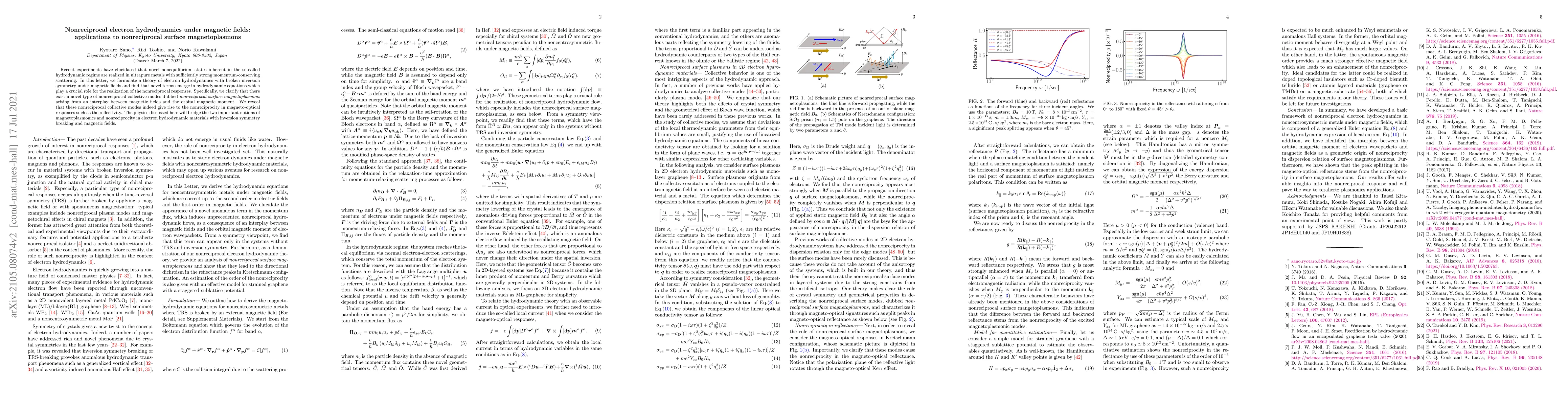 This paper develops a theory of electron hydrodynamics in ultrapure metals under magnetic fields, revealing novel nonreciprocal collective modes called nonreciprocal surface magnetoplasmons. These modes explain nonreciprocal magneto-optical responses, bridging magnetoplasmonics and nonreciprocity in materials with broken inversion symmetry.