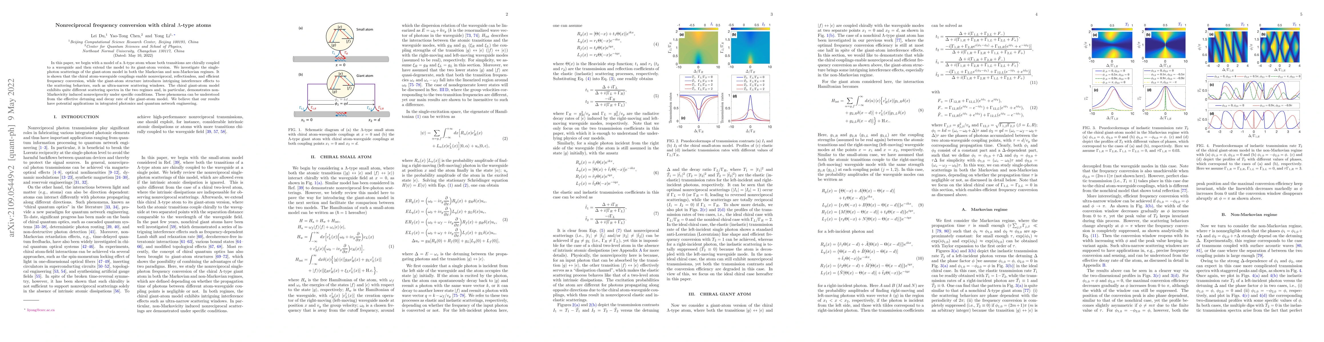 This paper explores a chiral $\Lambda$-type atom coupled to a waveguide, demonstrating nonreciprocal, reflectionless frequency conversion in both Markovian and non-Markovian regimes. The giant-atom model reveals unique interference effects and nonreciprocity under specific conditions, with potential applications in integrated photonics and quantum networks.