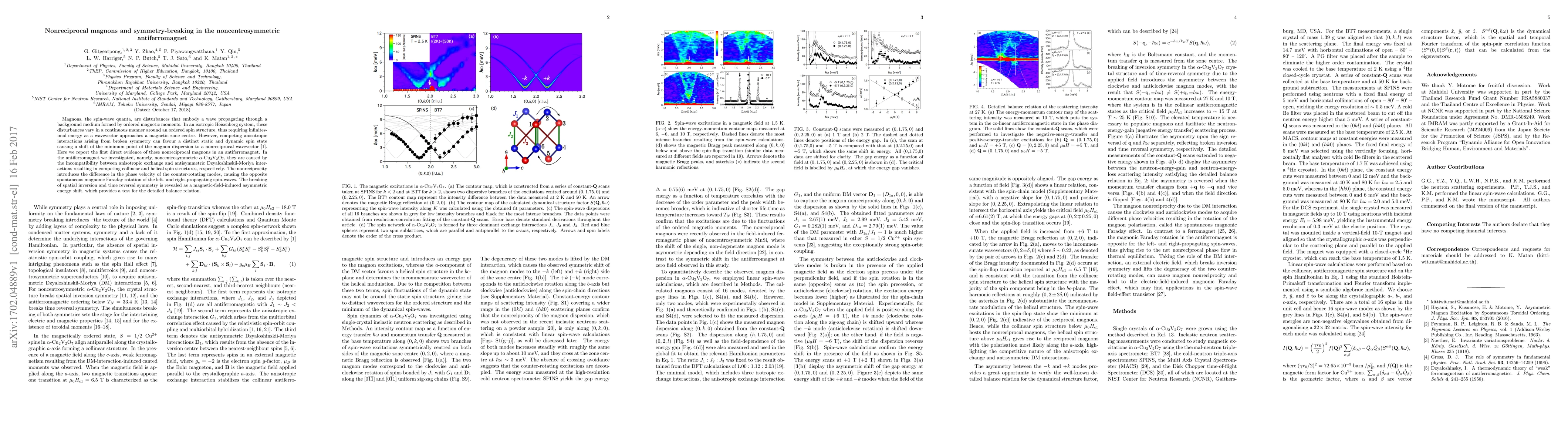 Magnons, the spin-wave quanta, are disturbances that embody a wave propagating through a background medium formed by ordered magnetic moments. In an isotropic Heisenberg system, these disturbances vary in a continuous manner around an ordered spin structure, thus requiring infinitesimal energy as a wavevector approaches a magnetic zone centre. However, competing anisotropic interactions arising from broken symmetry can favour a distinct static and dynamic spin state causing a shift of the minimum point of the magnon dispersion to a nonreciprocal wavevector. Here we report the first direct evidence of these nonreciprocal magnons in an antiferromagnet. In the antiferromagnet we investigated, namely, noncentrosymmetric $\alpha$-Cu$_2$V$_2$O$_7$, they are caused by the incompatibility between anisotropic exchange and antisymmetric Dzyaloshinskii-Moriya interactions resulting in competing collinear and helical spin structures, respectively. The nonreciprocity introduces the difference in the phase velocity of the counter-rotating modes, causing the opposite spontaneous magnonic Faraday rotation of the left- and right-propagating spin-waves. The breaking of spatial inversion and time reversal symmetry is revealed as a magnetic-field-induced asymmetric energy shift, which provides a test for the detailed balance relation.