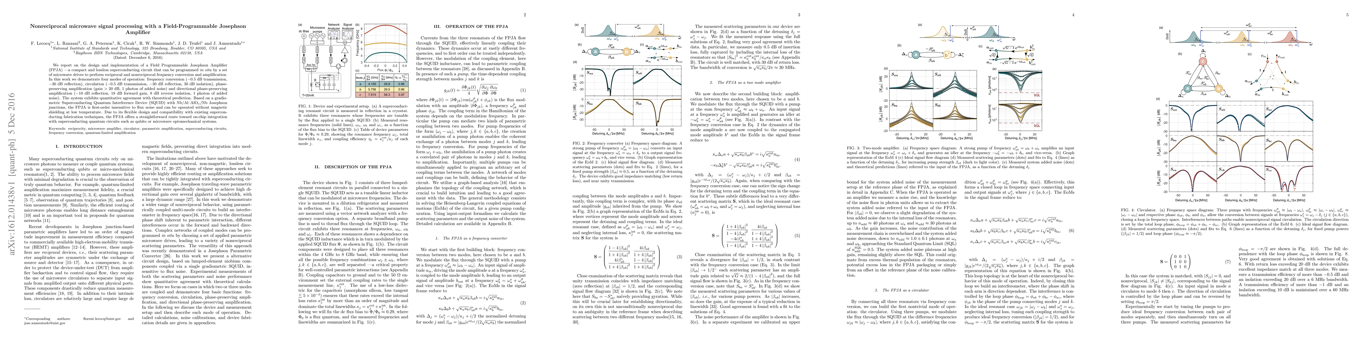 This paper details the design and implementation of a Field Programmable Josephson Amplifier (FPJA) capable of nonreciprocal microwave signal processing, demonstrating four operational modes including frequency conversion, circulation, phase-preserving amplification, and directional amplification. The FPJA is robust, lossless, and compatible with superconducting quantum circuits.
