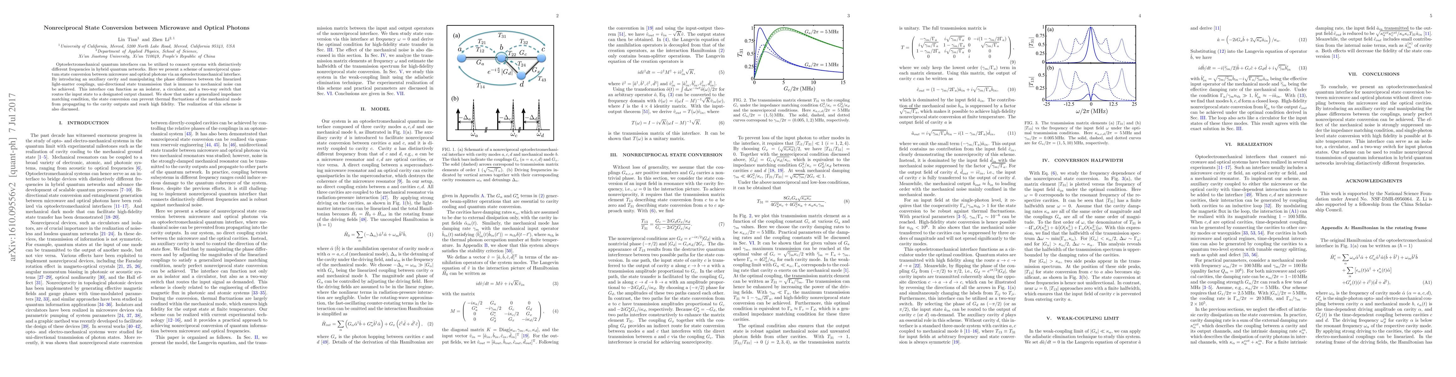 This paper proposes a nonreciprocal quantum interface for converting microwave photons to optical photons and vice versa using an optomechanical system. The scheme achieves unidirectional state transmission and operates as an isolator, circulator, and switch, demonstrating high fidelity and robustness against thermal fluctuations.