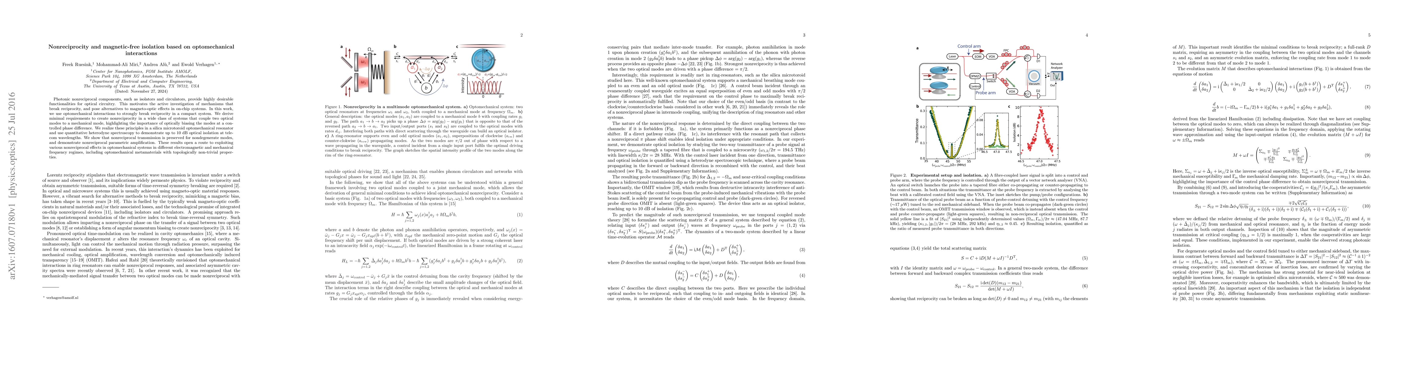 This paper explores optomechanical interactions to achieve magnetic-free optical isolation, demonstrating up to 10 dB isolation in a silica microtoroid resonator. The study highlights the importance of optically biasing modes at a controlled phase difference to break reciprocity and enable nonreciprocal transmission.