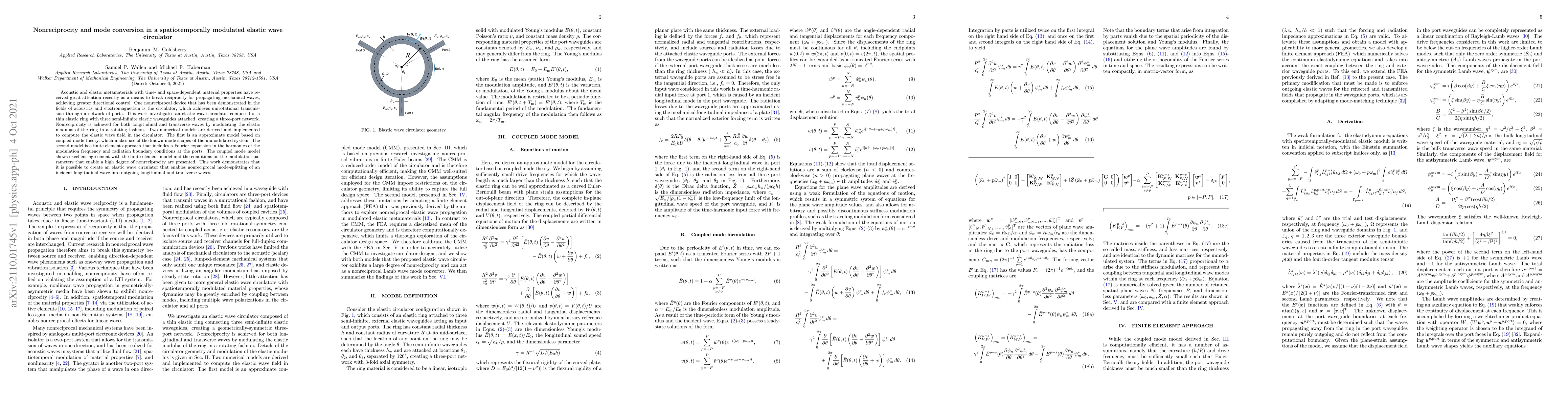 This paper investigates an elastic wave circulator using a spatiotemporally modulated elastic ring to achieve nonreciprocity and mode conversion for longitudinal and transverse waves. Two numerical models demonstrate the feasibility of the design, showing high agreement and enabling directional control of mechanical waves.