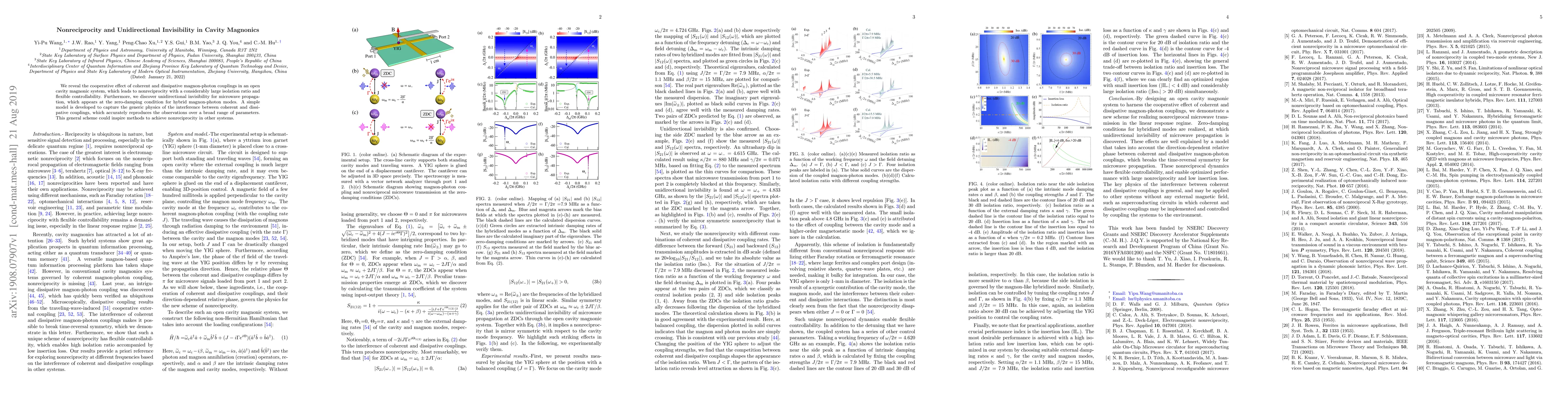 This paper explores nonreciprocity and unidirectional invisibility in cavity magnonics, demonstrating large isolation ratios and flexible control through coherent and dissipative magnon-photon couplings. It also reveals unidirectional invisibility for microwaves under zero-damping conditions, supported by a model that accurately captures the underlying physics.