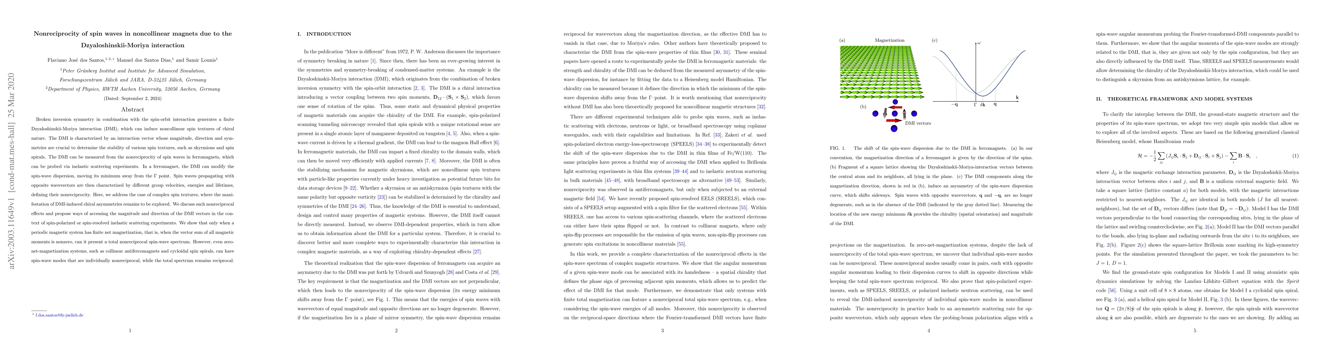 This paper investigates how the Dzyaloshinskii-Moriya interaction (DMI) in noncollinear magnets leads to nonreciprocal spin waves, characterized by different group velocities and energies for opposite wavevectors. It proposes methods to measure DMI through spin-polarized inelastic scattering and highlights that while periodic magnetic systems with net magnetization exhibit a nonreciprocal spin-wave spectrum, some zero-net-magnetization systems can still have individually nonreciprocal spin-wave modes.