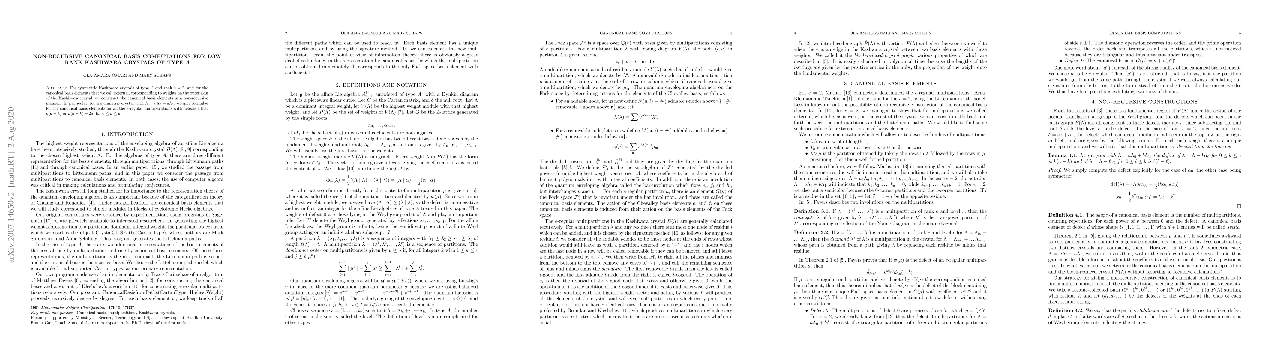 For symmetric Kashiwara crystals of type $A$ and rank $e=2$, and for the canonical basis elements that we call external, corresponding to weights on the outer skin of the Kashiwara crystal, we construct the canonical basis elements in a non-recursive manner. In particular, for a symmetric crystal with $\Lambda=a \Lambda_0+a \Lambda_1$, we give formulae for the canonical basis elements for all the $e$-regular multipartitions with defects either $k(a-k)$ or $k(a-k)+2a$, for $0 \leq k \leq a$.