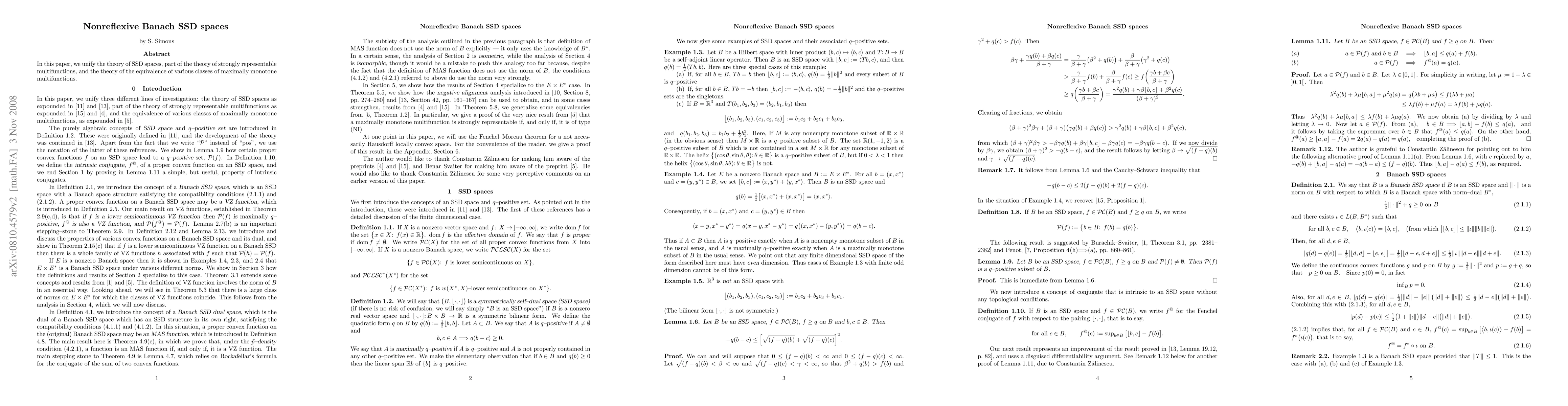 Summary: This paper unifies the theory of SSD spaces within the framework of strongly representable multifunctions and explores the equivalence of different classes of maximally monotone multifunctions. The focus is on nonreflexive Banach spaces.