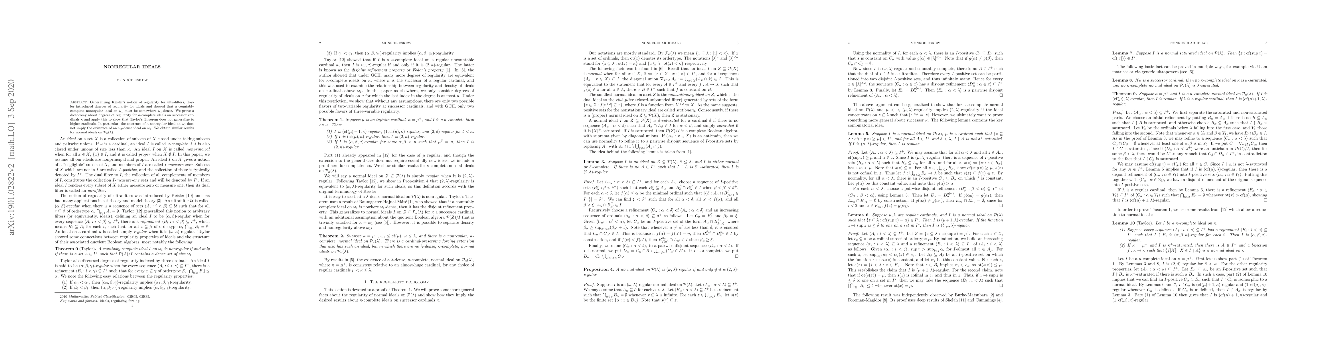 This paper generalizes the concept of regularity for ideals beyond countable cardinals, proving that a countably complete nonregular ideal on $\omega_1$ is $\omega_1$-dense. It establishes a dichotomy for $\kappa$-complete ideals on successor cardinals, showing that Taylor's Theorem does not extend to higher cardinals, specifically $\omega_2$.